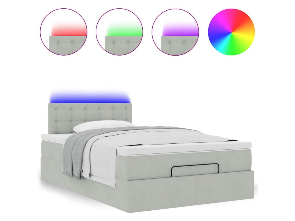 Osmanská postel s matrací & LED světle šedá 120x190cm samet 3312752