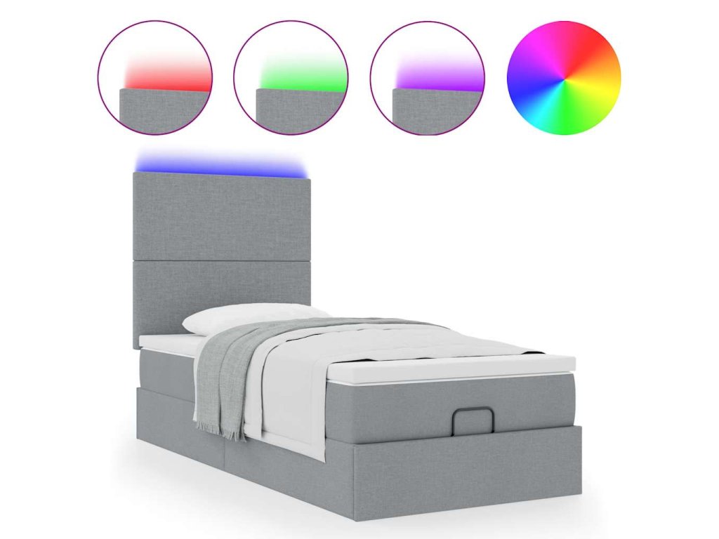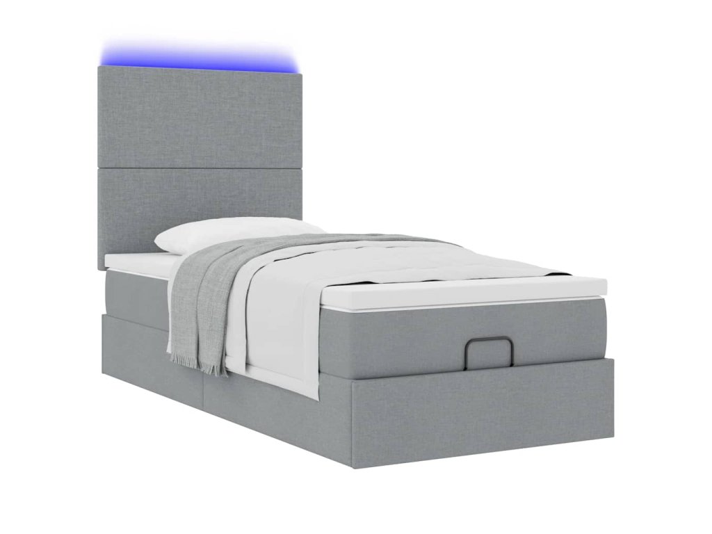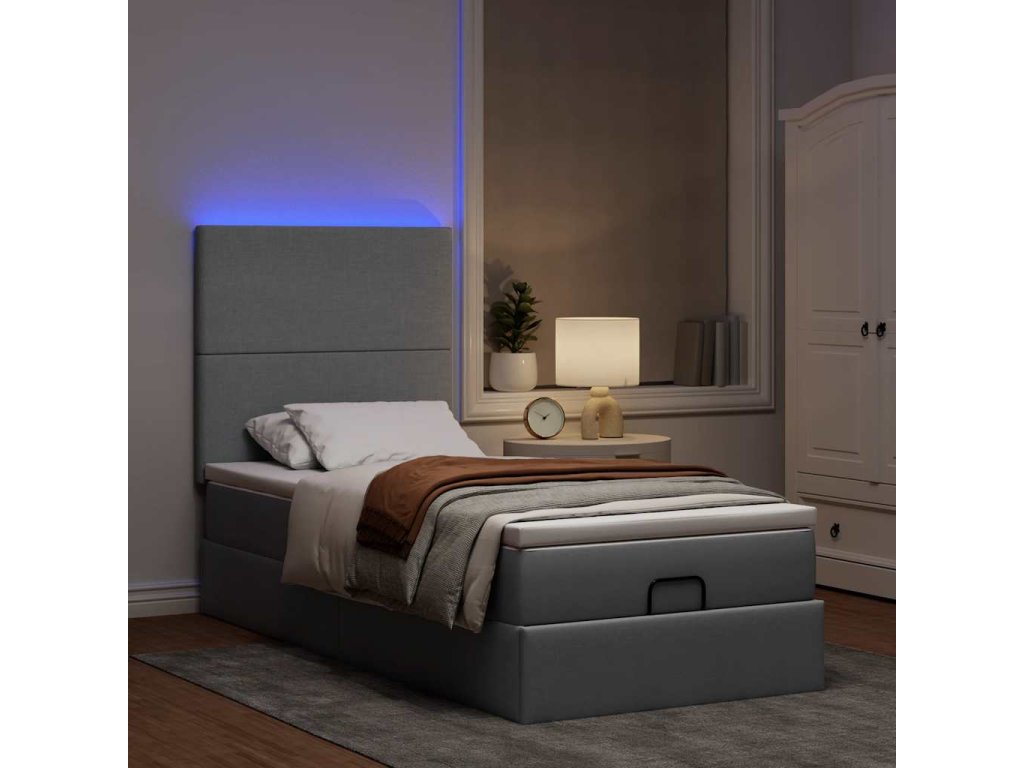 Osmanská postel s matrací & LED světle šedá 80x200cm látka 3313878