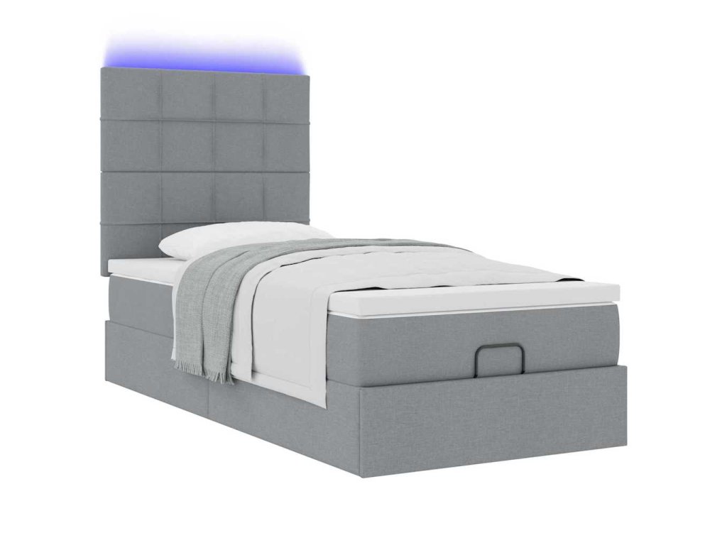 Osmanská postel s matrací & LED světle šedá 80x200cm látka 3313961
