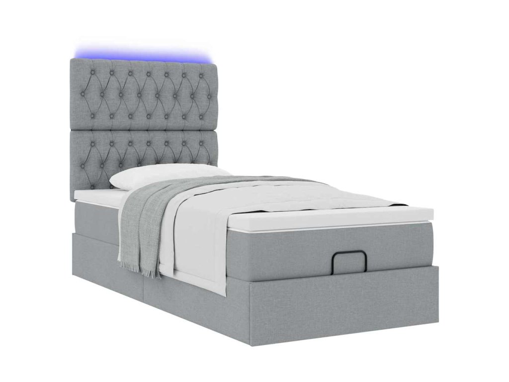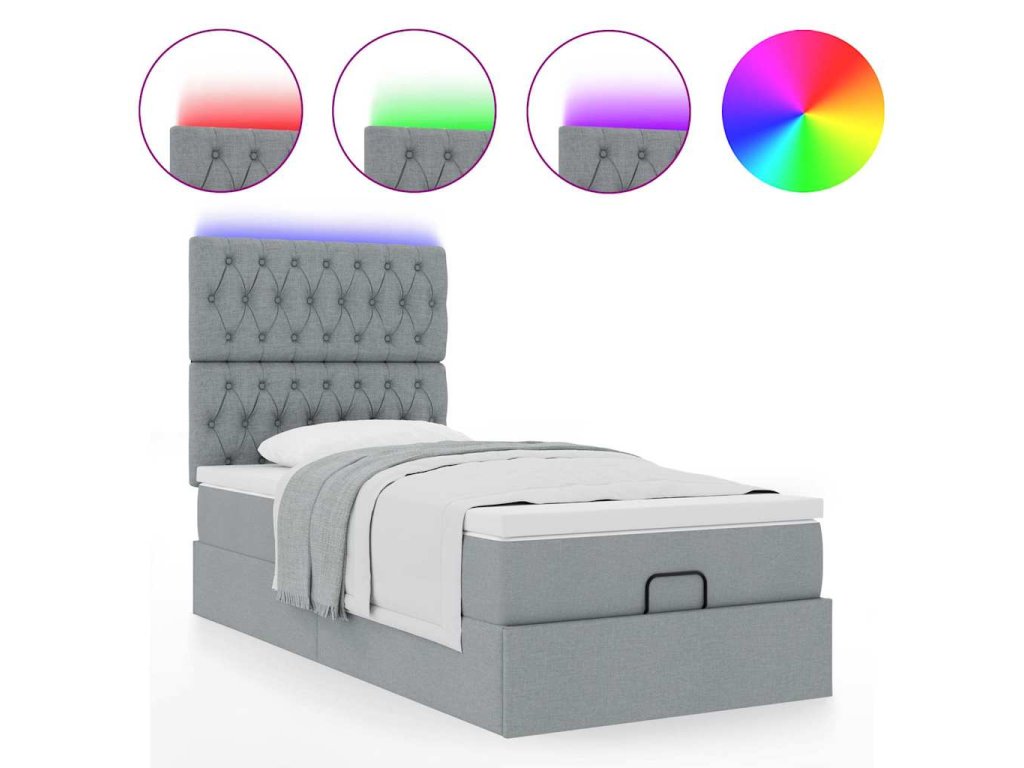 Osmanská postel s matrací & LED světle šedá 80x200cm látka 3314044