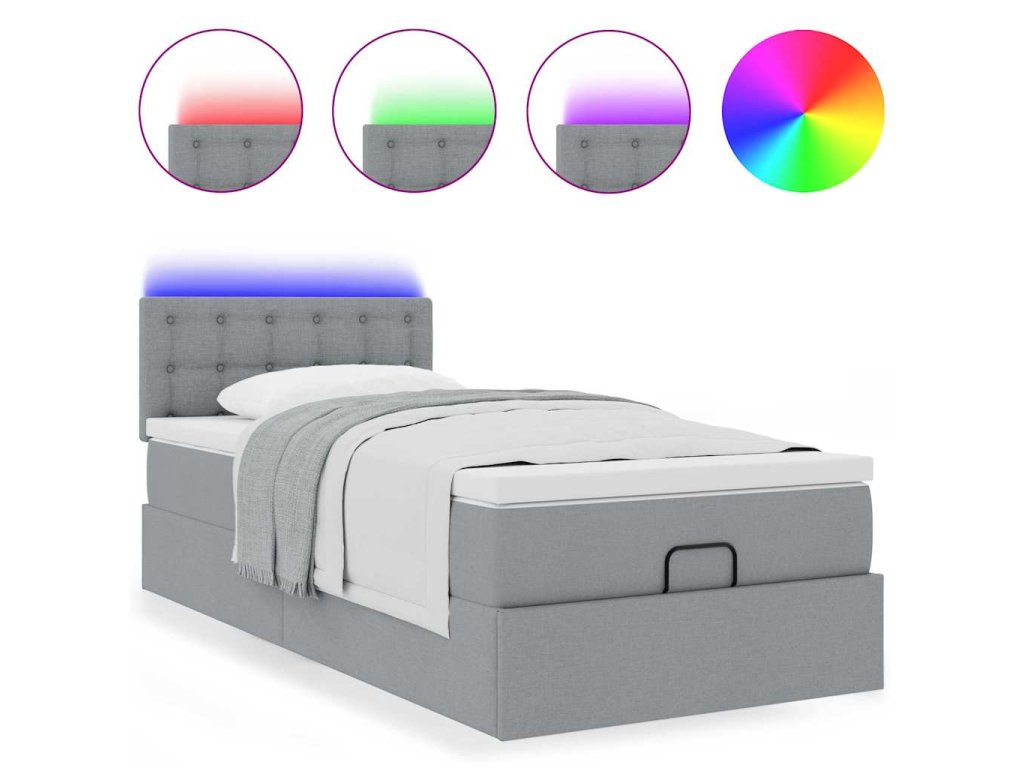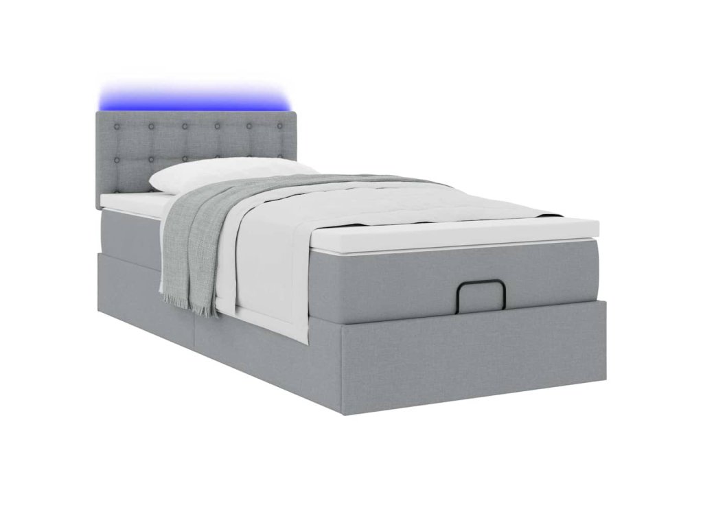 Osmanská postel s matrací & LED světle šedá 90x200 cm látka 3312443