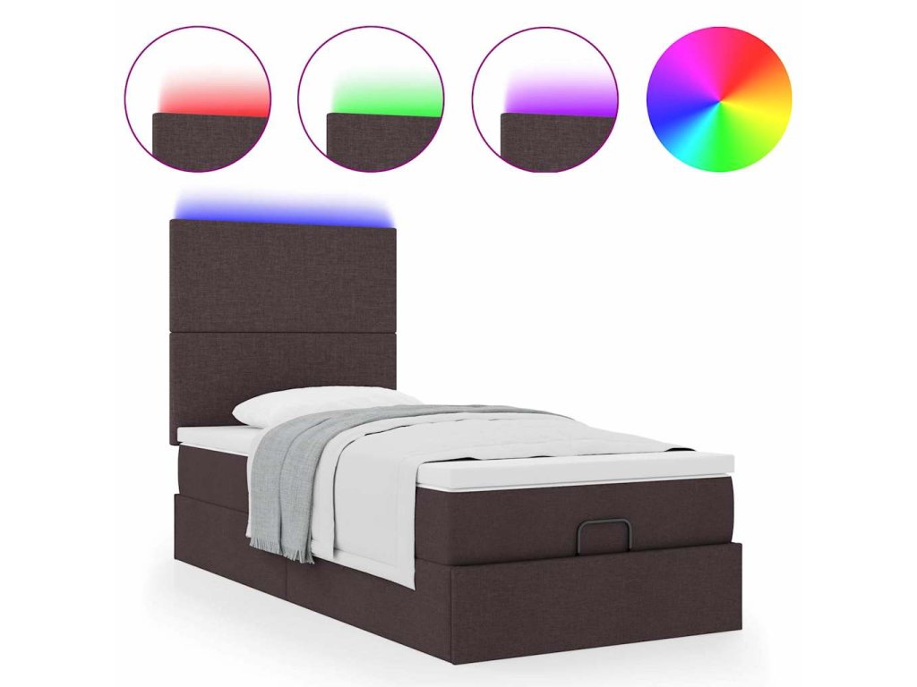 Osmanská postel s matrací & LED tmavě hnědá 90x200 cm látka 3313895