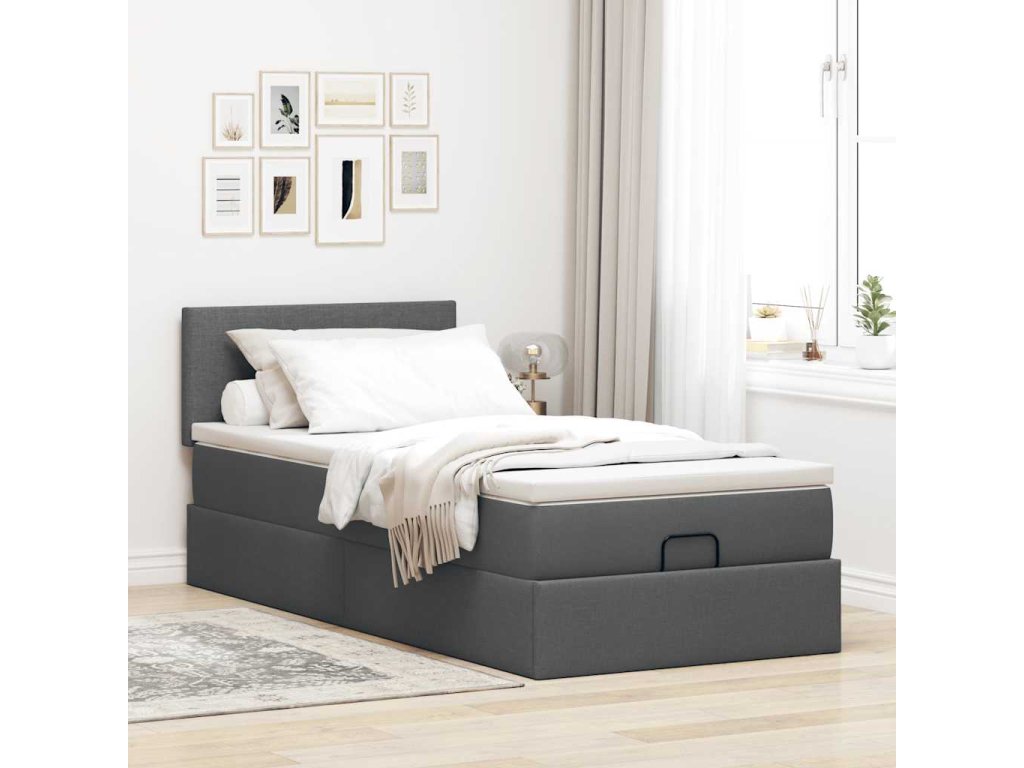Osmanská postel s matrací & LED tmavě šedá 90x200 cm látka 3312195