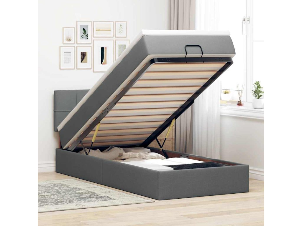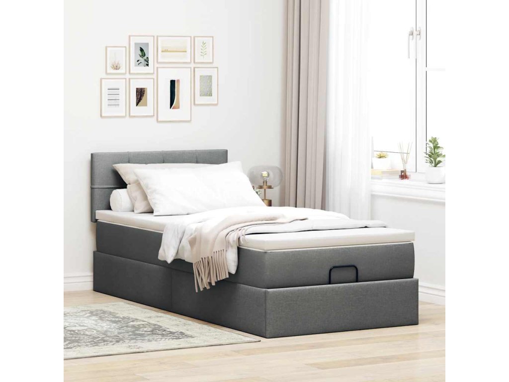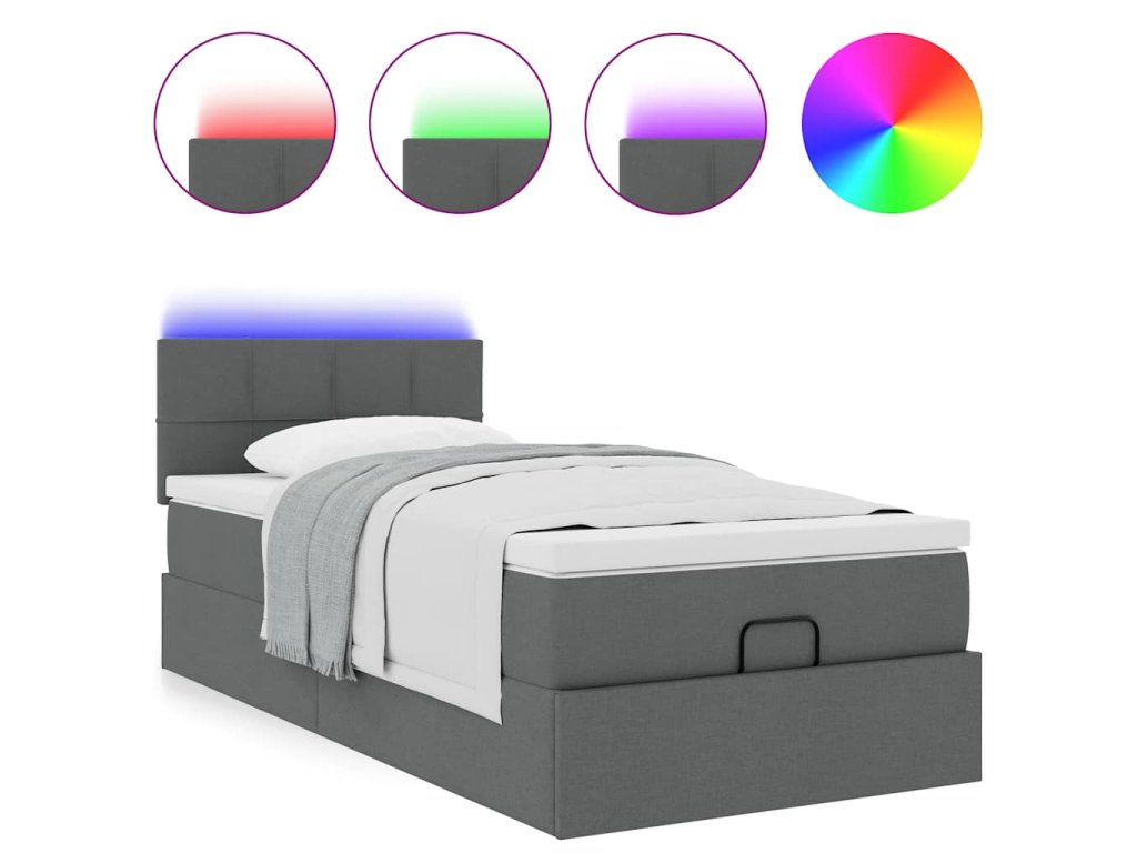 Osmanská postel s matrací & LED tmavě šedá 90x200 cm látka 3312278