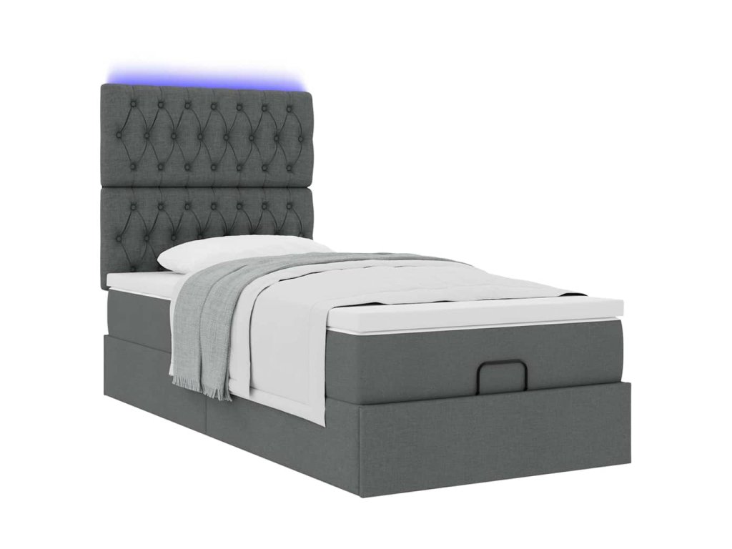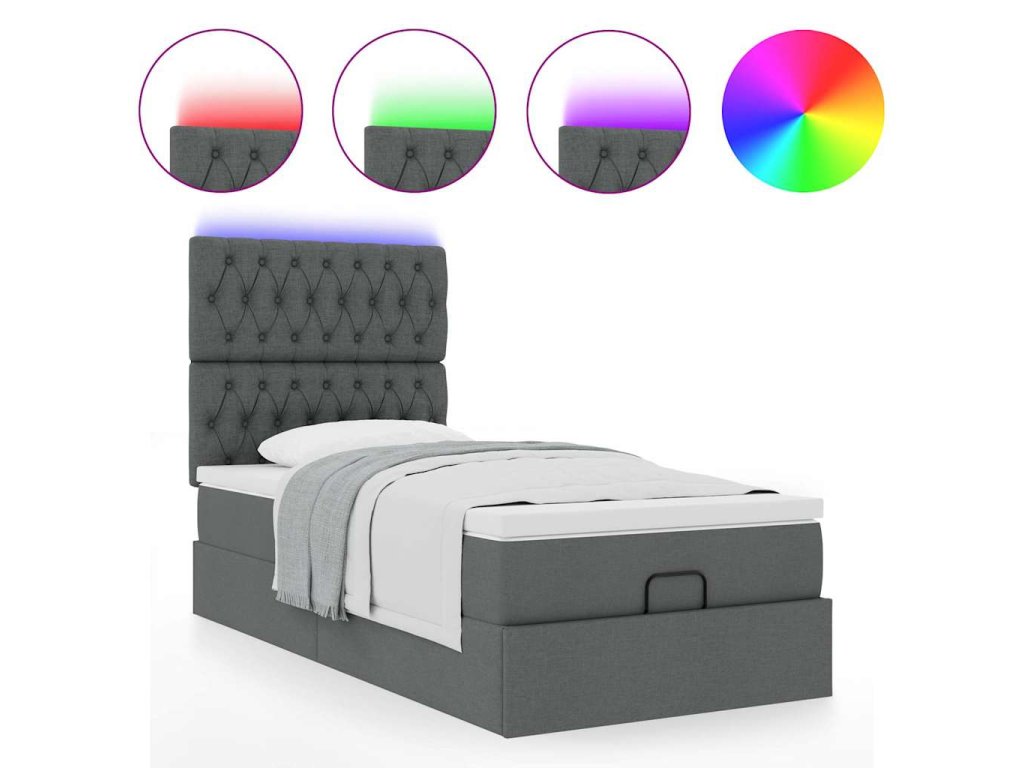 Osmanská postel s matrací & LED tmavě šedá 90x200 cm látka 3314059