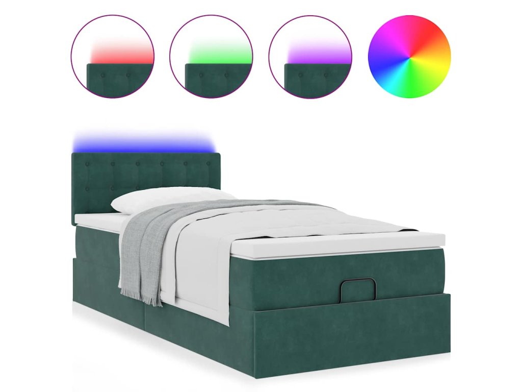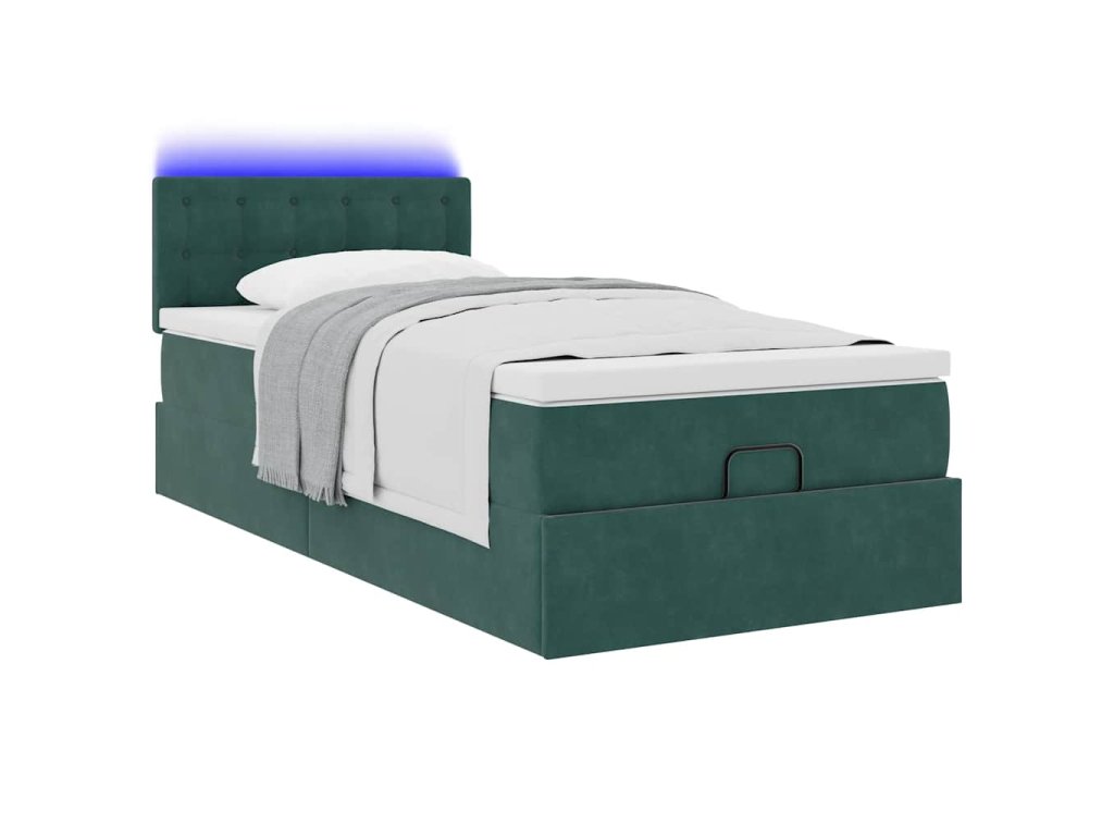 Osmanská postel s matrací & LED tmavě zelená 80x200cm samet 3312731