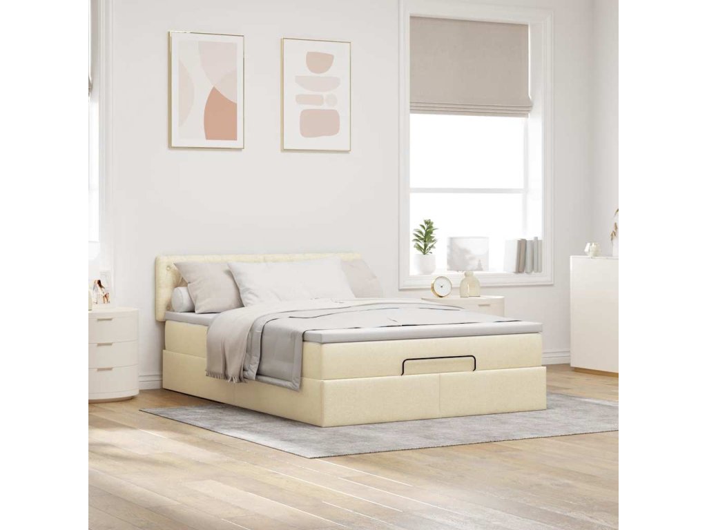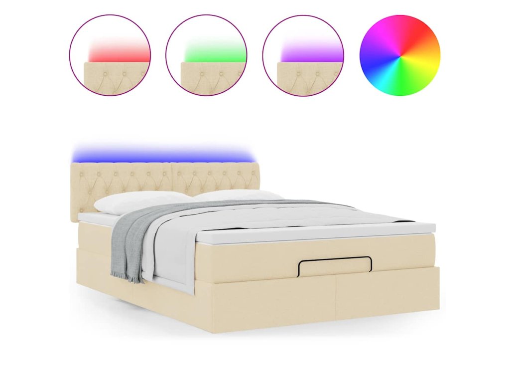 Osmanská postel s matrací & LEDs Cream 140x200 cm Látka 3312400