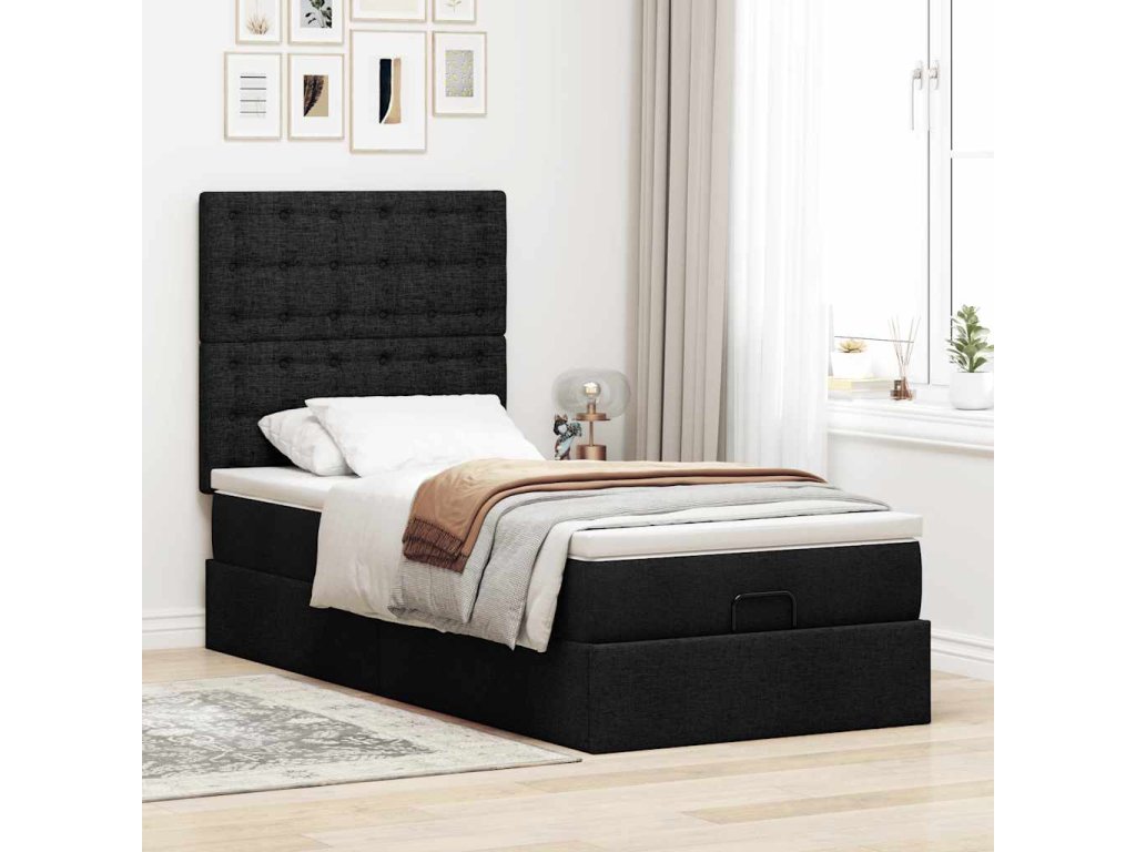 Osmanský postel s matrací černá 100x200 cm textil 3313301
