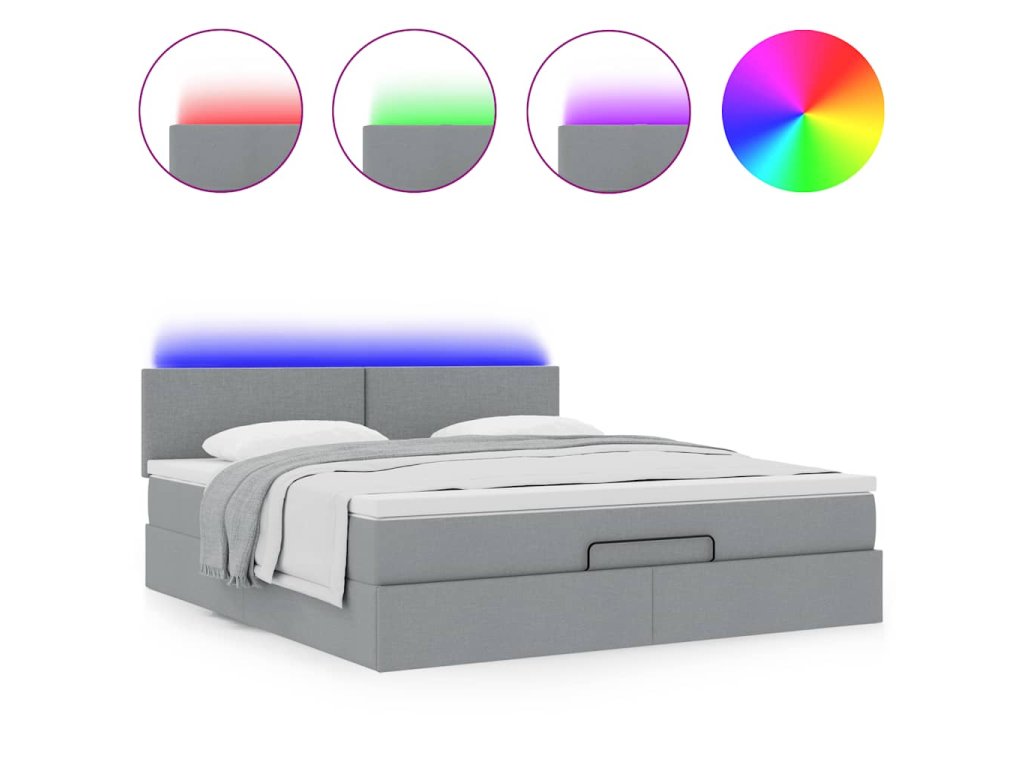 - Světla LED pro příjemnou atmosféru: Tato postel je vybavena LED osvětlením, které lze snadno nastavit a vytvořit tak individuální světelnou atmosféru. Umožňuje přizpůsobit režimy, barvy a jas, abyste si vytvořili příjemnou atmosféru svého interiéru.