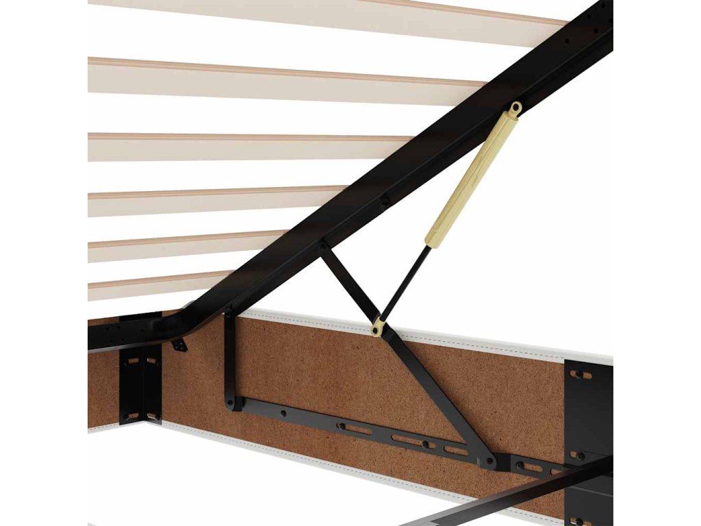 - Pohodlný zvedací mechanismus: Integrovaný hydraulický zvedací mechanismus umožňuje snadný přístup k vašim věcem uloženým pod postelí. Jednoduchým zatažením za rukojeť se základna roštu hladce zvedne a umožní vám rychle a bez námahy vyndat vaše věci.