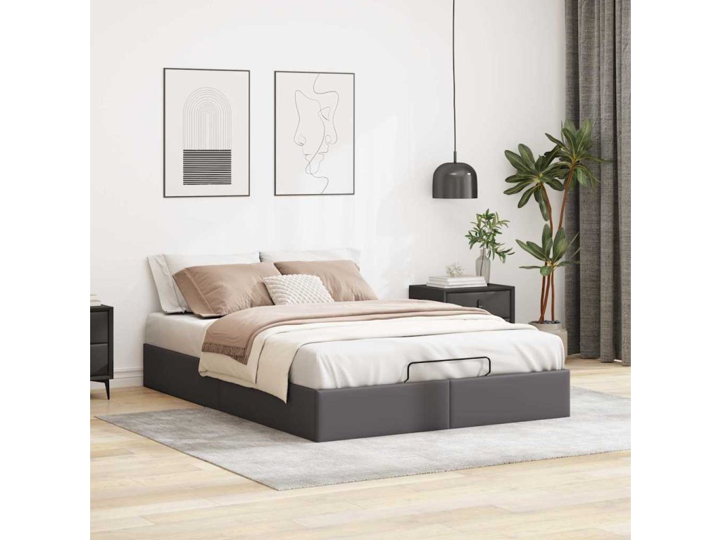Osmanský rám postele bez matrace šedá 140x200 cm umělá kůže 3310807
