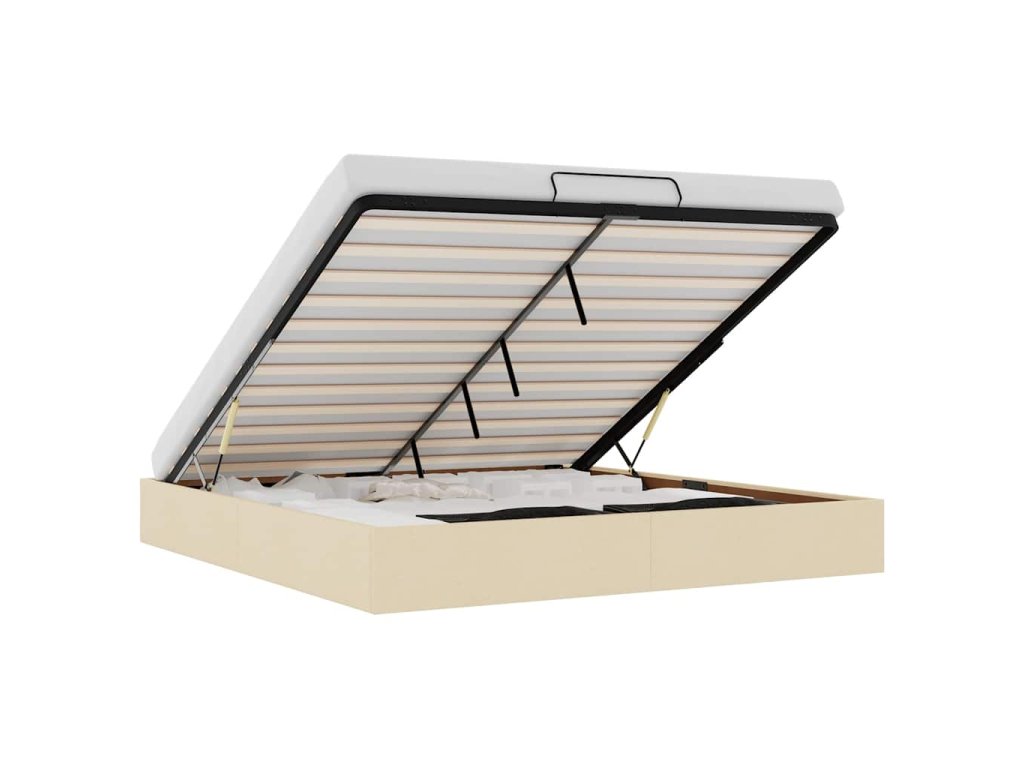 - Pohodlný zvedací mechanismus: Integrovaný hydraulický zvedací mechanismus umožňuje snadný přístup k vašim věcem uloženým pod postelí. Jednoduchým zatažením za rukojeť se základna roštu hladce zvedne a umožní vám rychle a bez námahy vyndat vaše věci.