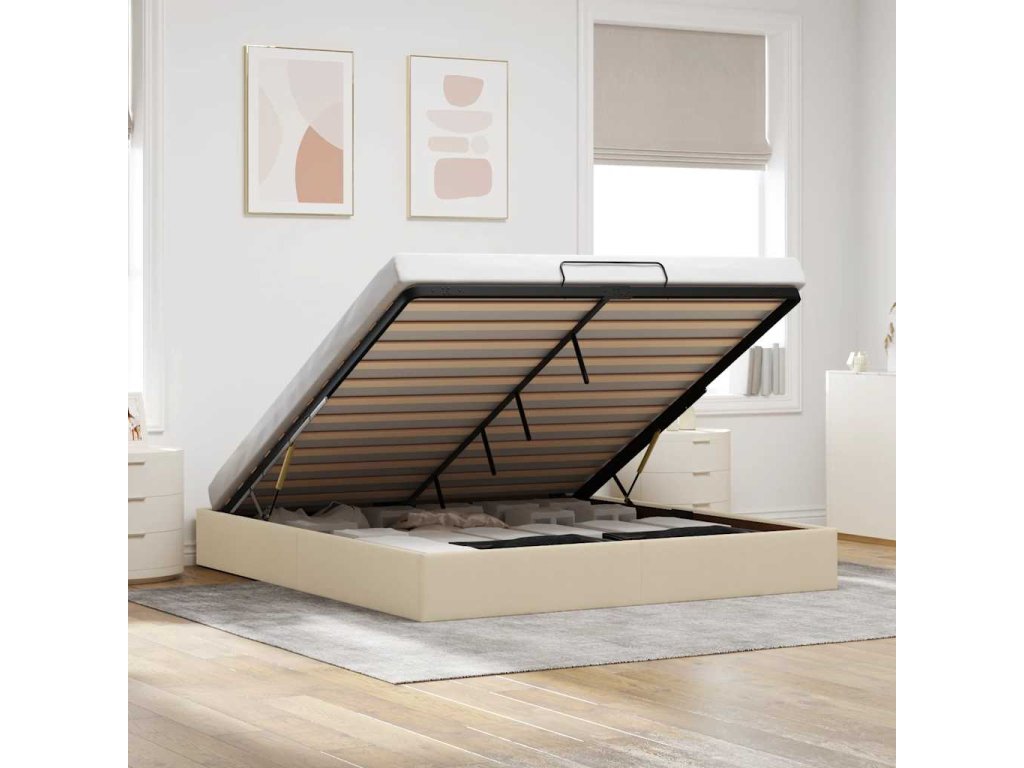 Tento rám postele s otomanem dokonale kombinuje moderní estetiku s praktickou funkčností a nabízí vám jak řešení úložného prostoru, tak pohodlné spaní.