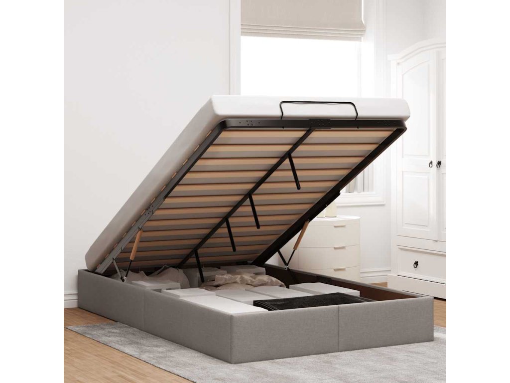 Tento rám postele s otomanem dokonale kombinuje moderní estetiku s praktickou funkčností a nabízí vám jak řešení úložného prostoru, tak pohodlné spaní.