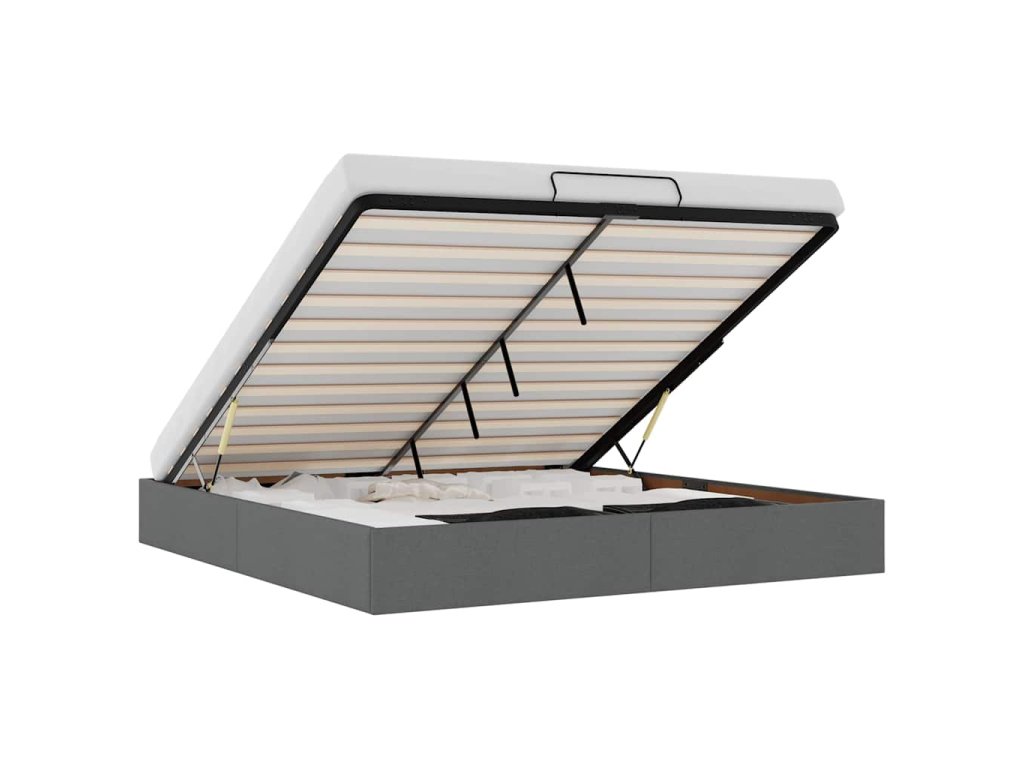 - Pohodlný zvedací mechanismus: Integrovaný hydraulický zvedací mechanismus umožňuje snadný přístup k vašim věcem uloženým pod postelí. Jednoduchým zatažením za rukojeť se základna roštu hladce zvedne a umožní vám rychle a bez námahy vyndat vaše věci.