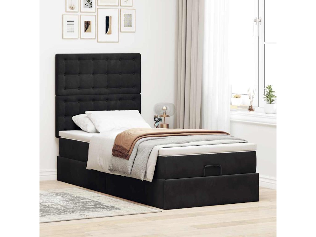 Osmanský rám postele s matracemi černá 100x200cm samet 3314446
