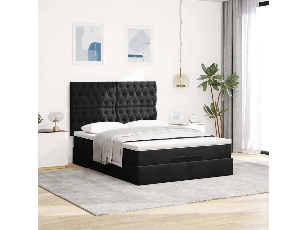 Osmanský rám postele s matracemi černá 140x200cm samet 3314398