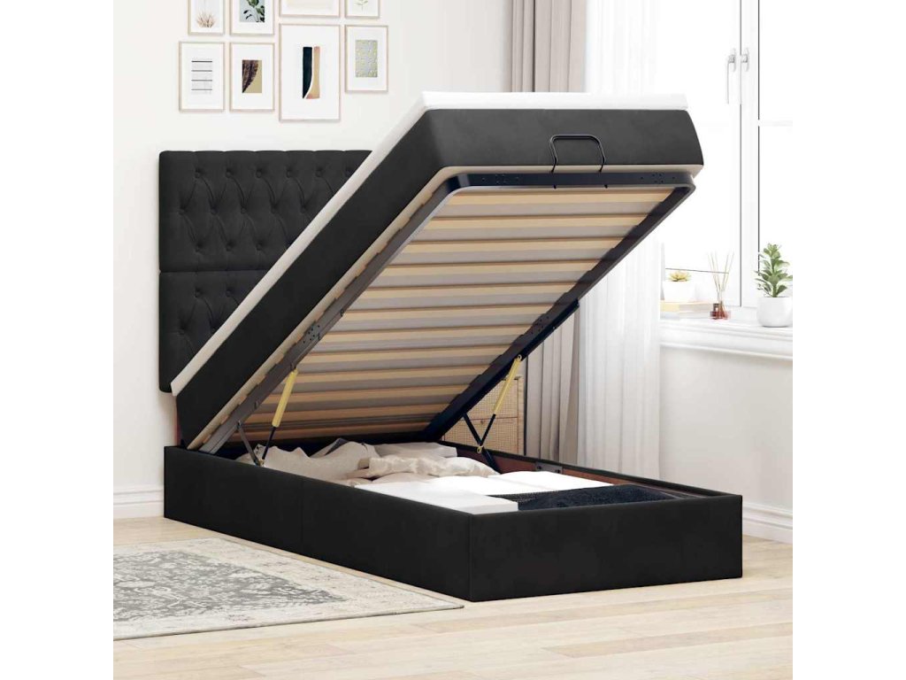 Osmanský rám postele s matracemi černá 90x190cm samet 3313513