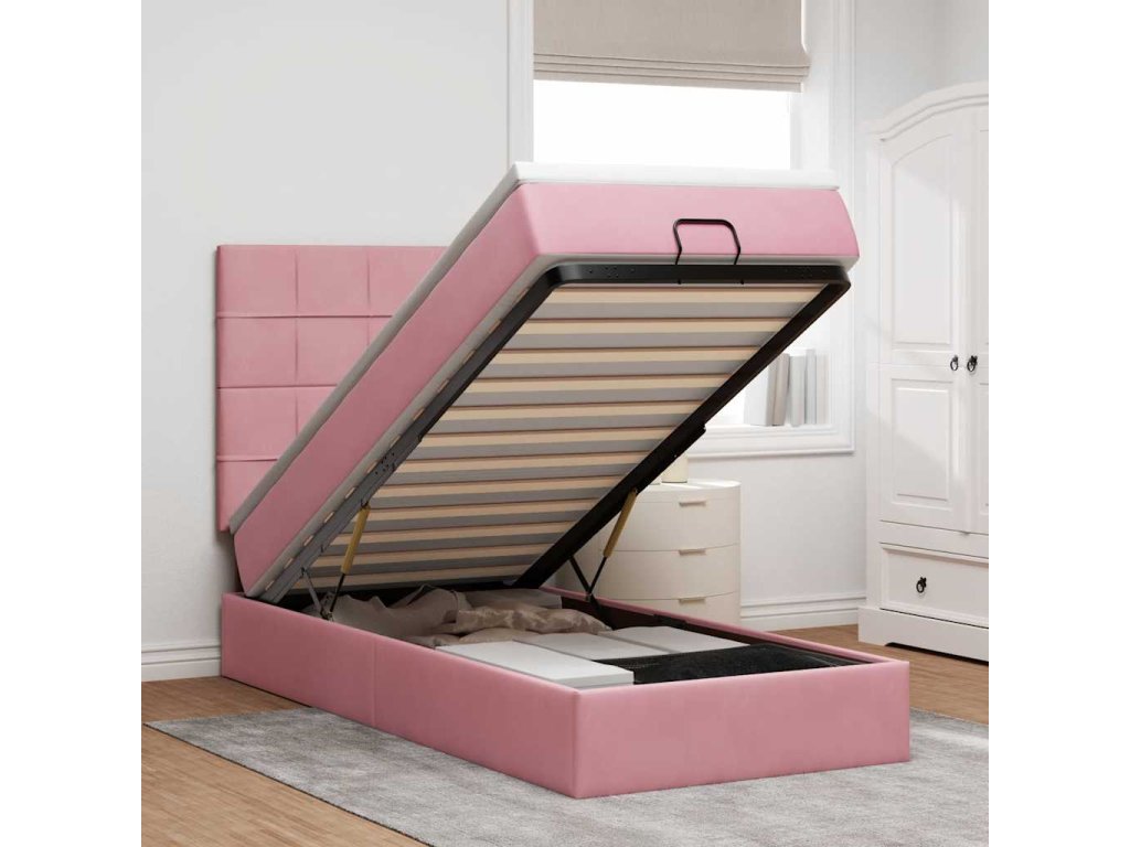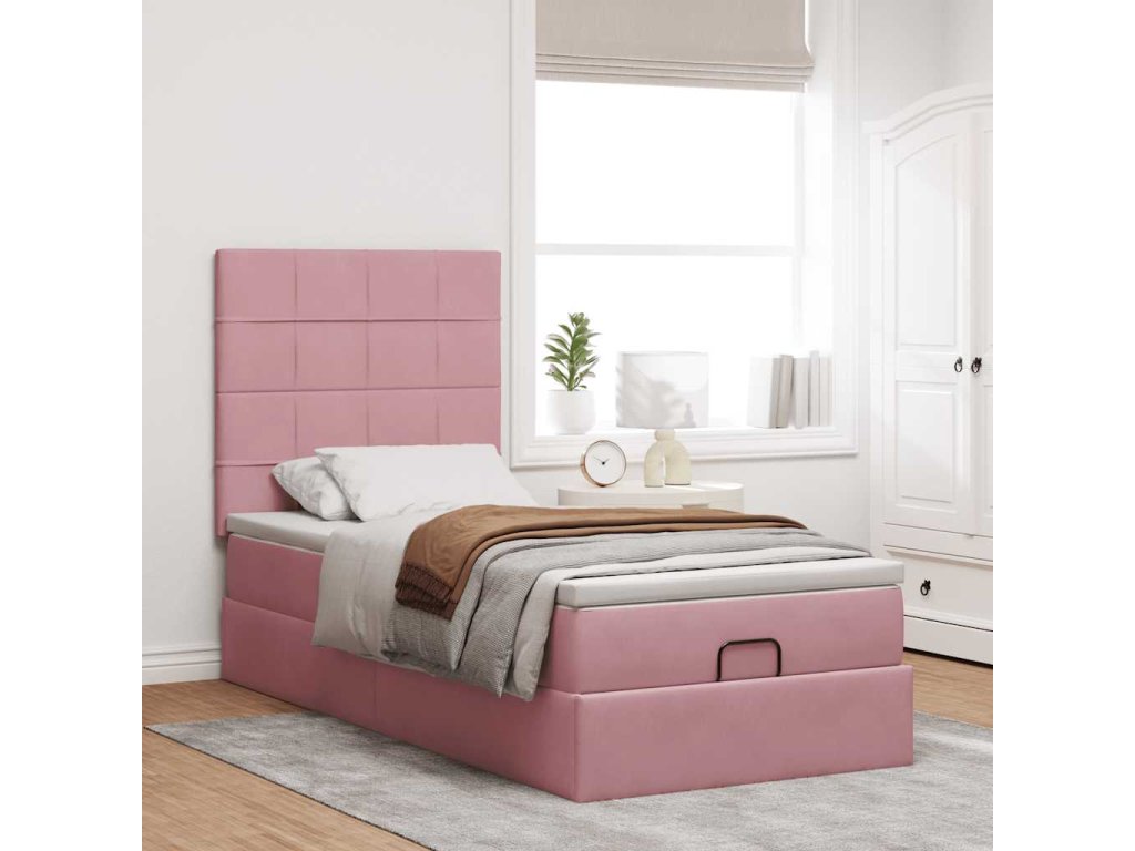 Osmanský rám postele s matracemi růžová 100x200cm samet 3313456