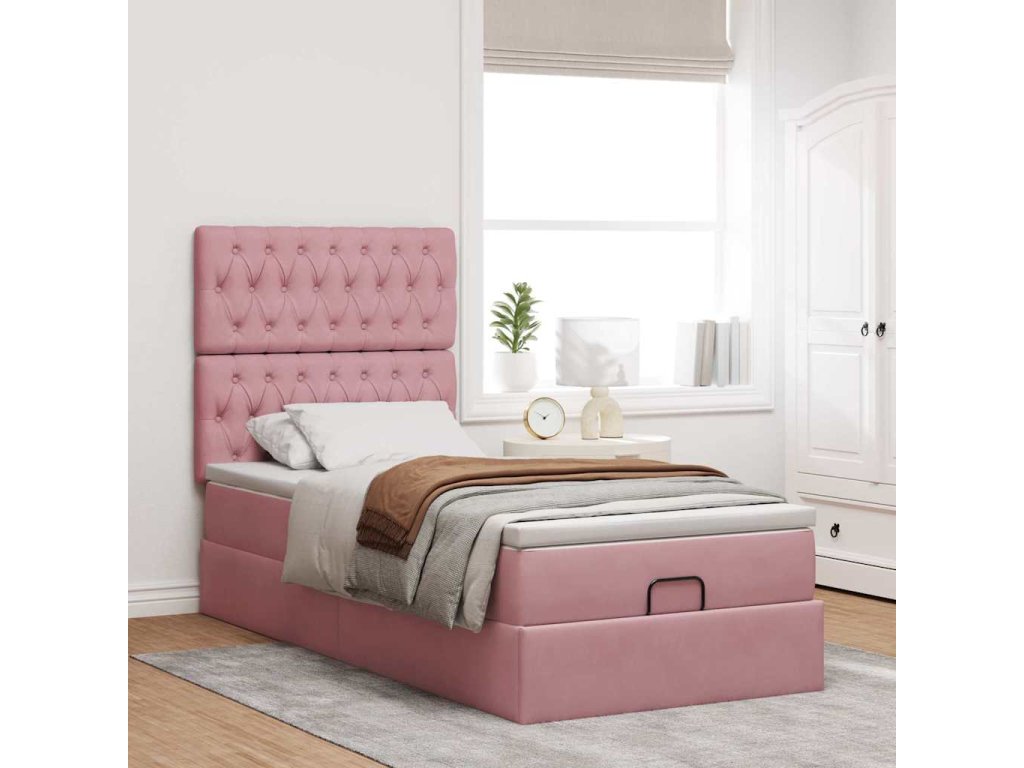 Osmanský rám postele s matracemi růžová 100x200cm samet 3313528