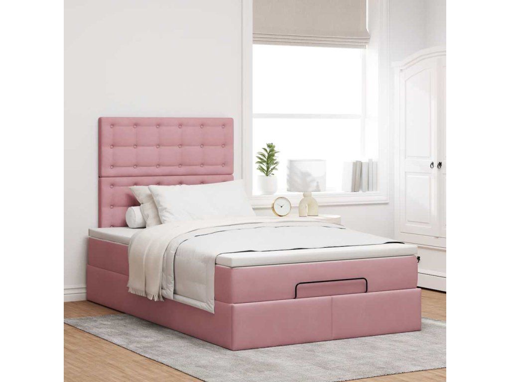 Osmanský rám postele s matracemi růžová 120x190 cm samet 3314455