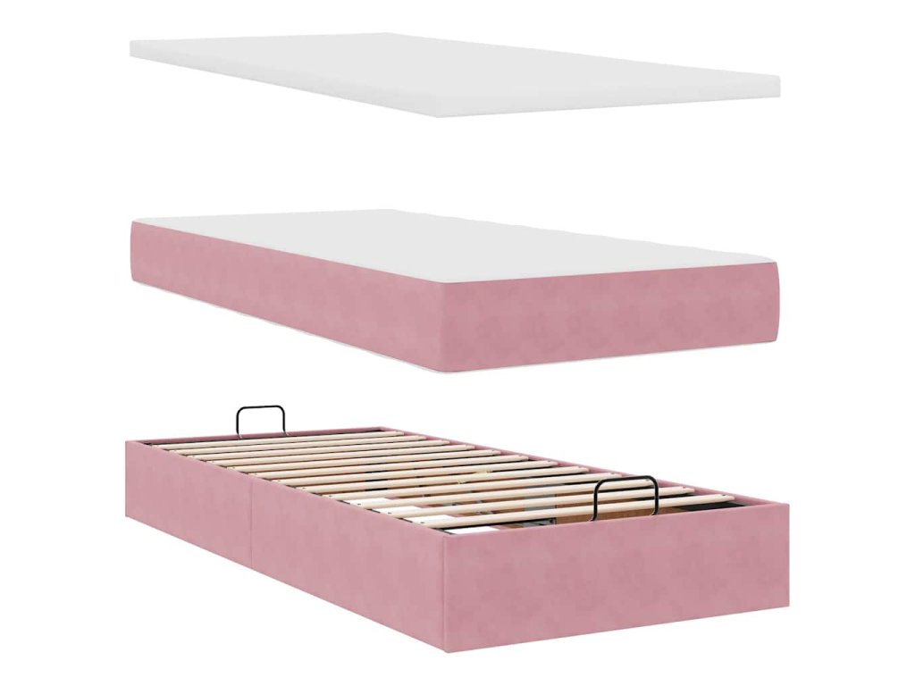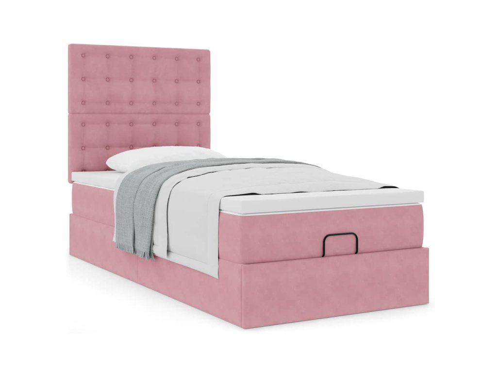 Osmanský rám postele s matracemi růžová 90x190cm samet 3313588