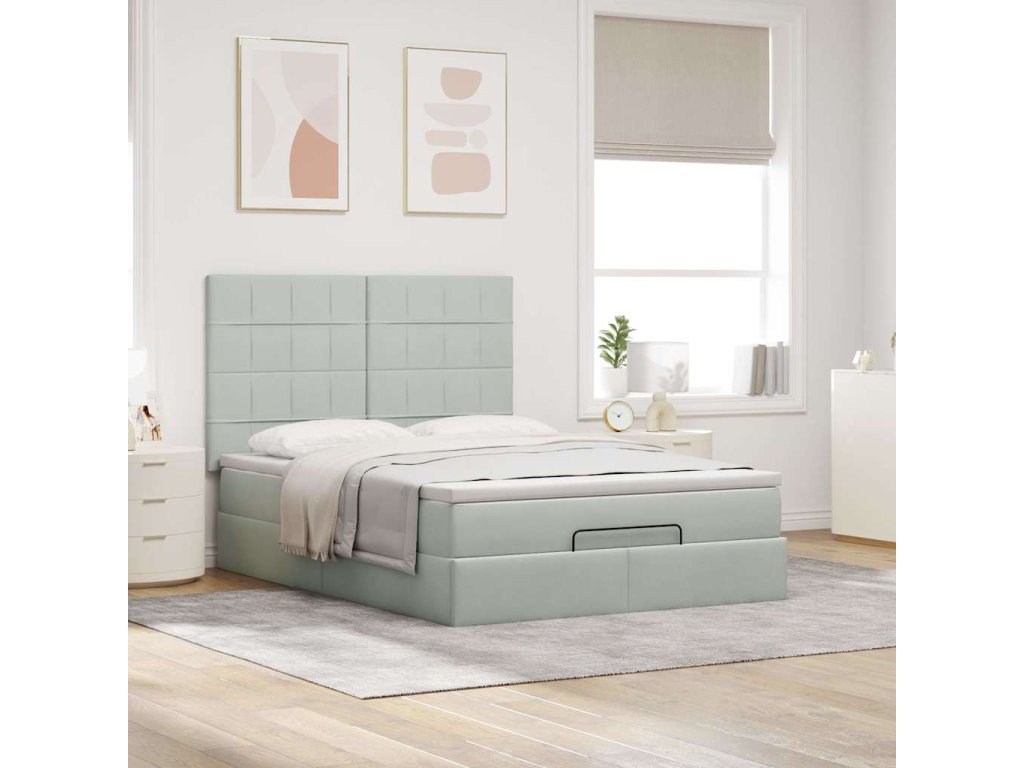 Osmanský rám postele s matracemi světle šedá 140x200cm samet 3314324