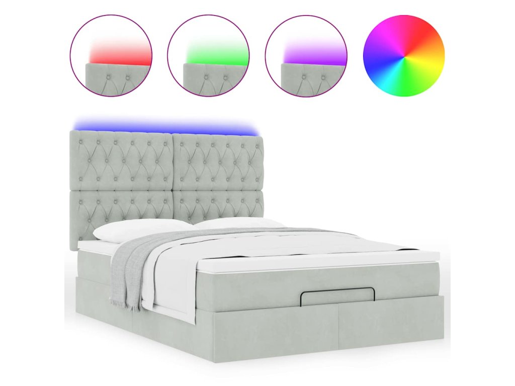- Světla LED pro příjemnou atmosféru: Tato postel je vybavena LED osvětlením, které lze snadno nastavit a vytvořit tak individuální světelnou atmosféru. Umožňuje přizpůsobit režimy, barvy a jas, abyste si vytvořili příjemnou atmosféru svého interiéru.