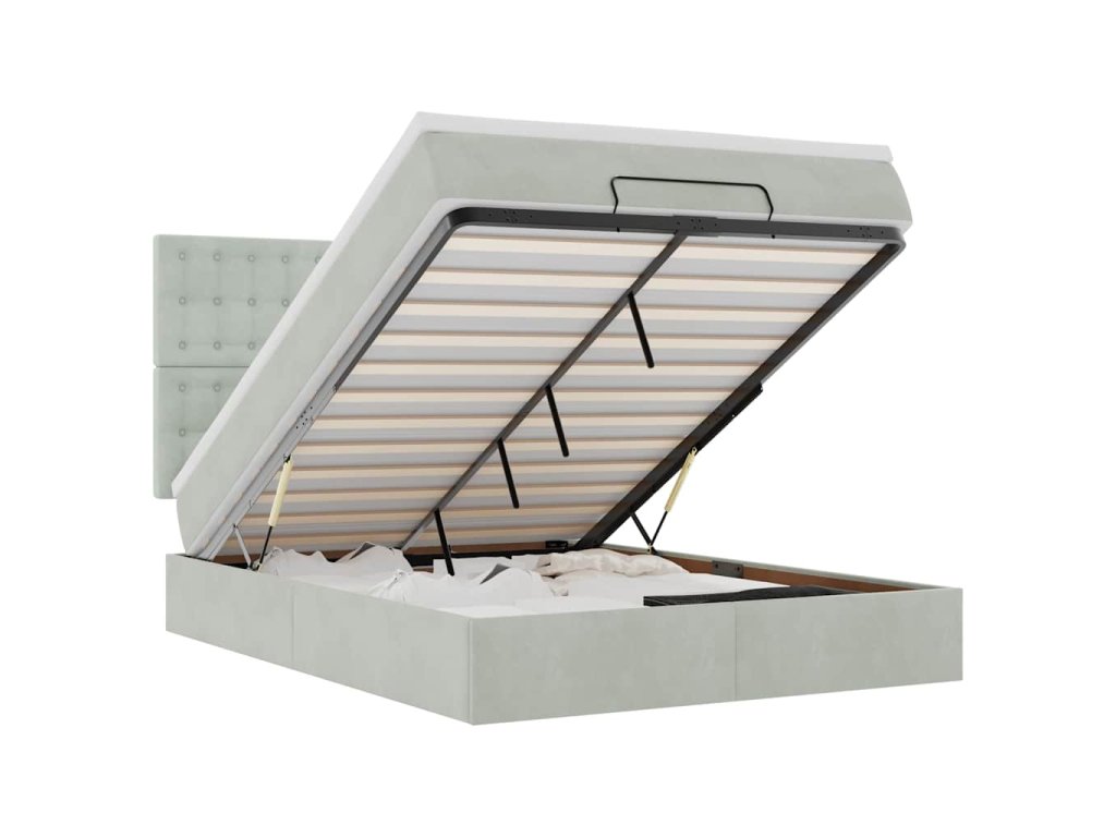 - Dostatek úložného prostoru pod postelí: Díky hydraulickému zvedacímu mechanismu nabízí rám postele dostatek úložného prostoru pod postelí, čímž maximalizuje prostor, aniž by zabíral další podlahovou plochu. Jednoduchým zatažením za rukojeť se roštová základna hladce zvedne a umožní vám rychle a bez námahy vyndat vaše věci.