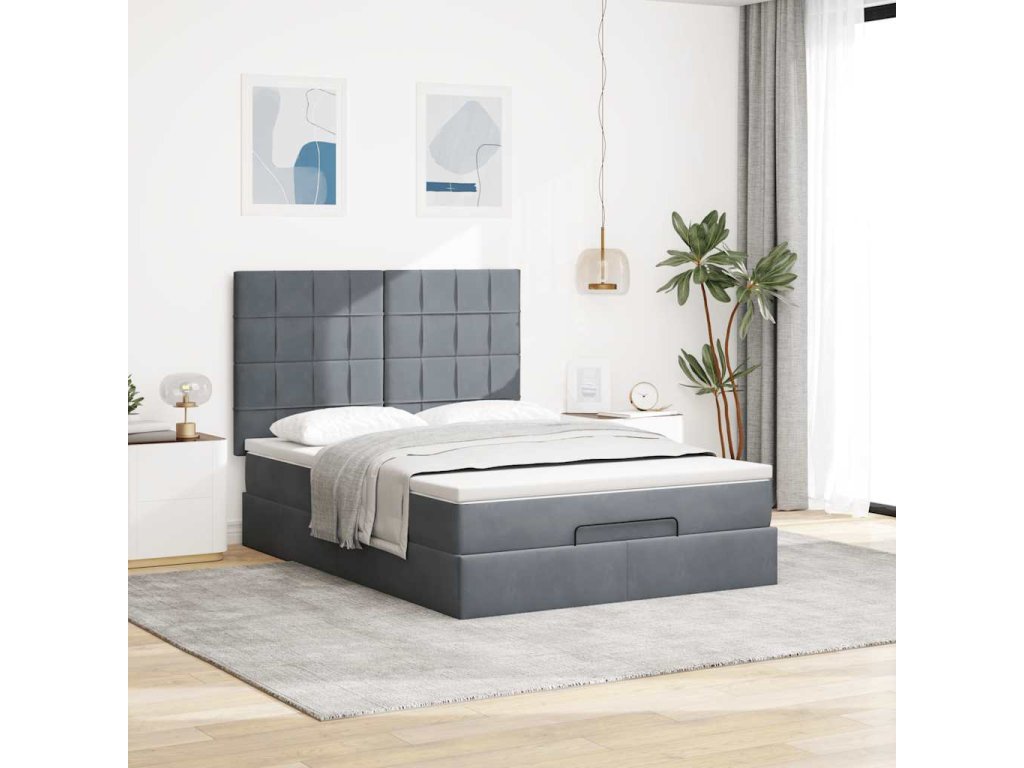 Osmanský rám postele s matracemi tmavě šedá 140x190cm samet 3314319