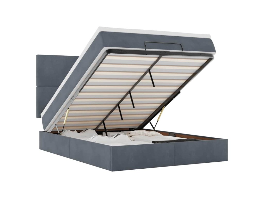 - Dostatek úložného prostoru pod postelí: Díky hydraulickému zvedacímu mechanismu nabízí rám postele dostatek úložného prostoru pod postelí, čímž maximalizuje prostor, aniž by zabíral další podlahovou plochu. Jednoduchým zatažením za rukojeť se roštová základna hladce zvedne a umožní vám rychle a bez námahy vyndat vaše věci.
