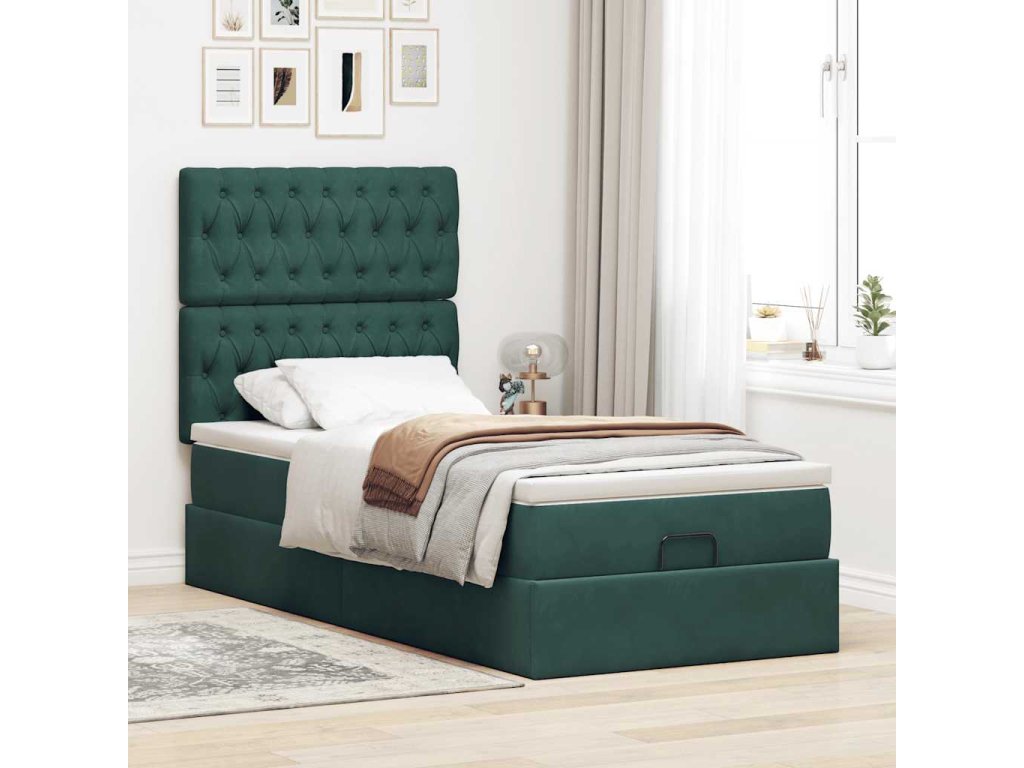 Osmanský rám postele s matracemi tmavě šedá 80x200cm samet 3313508