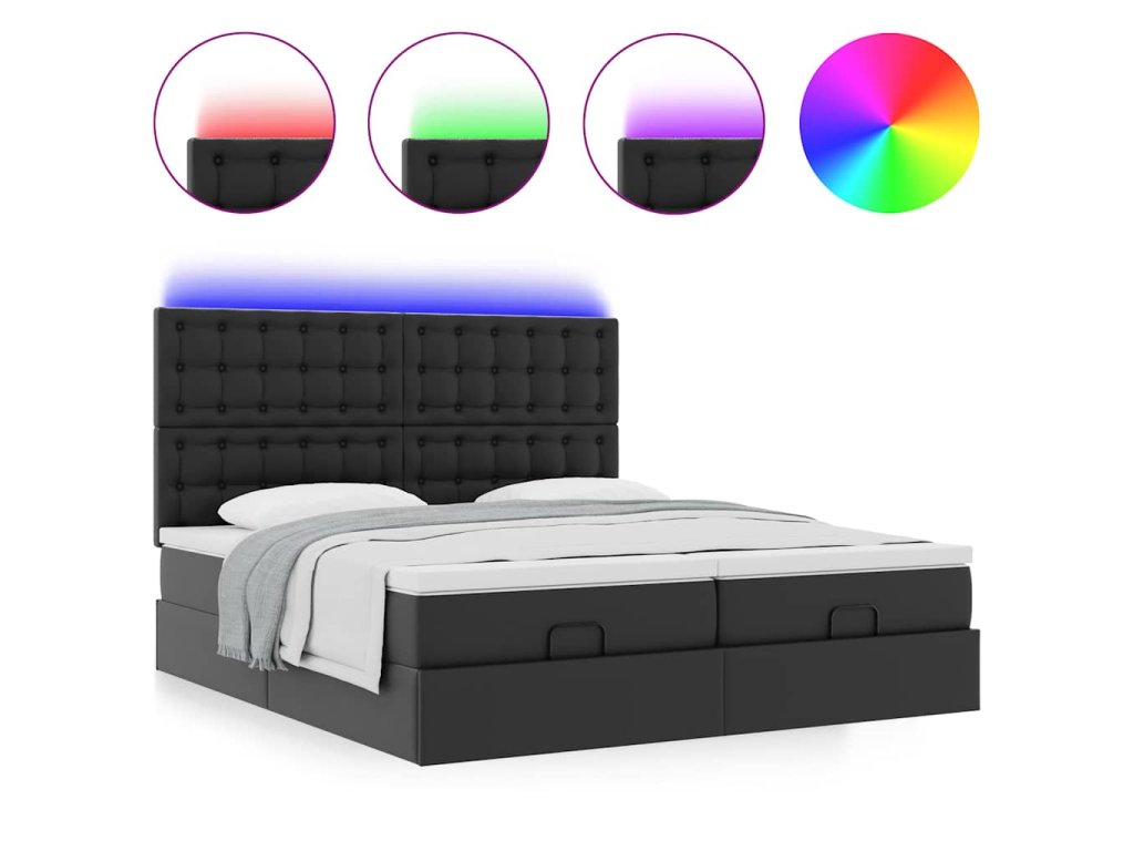 - Světla LED pro příjemnou atmosféru: Tato postel je vybavena LED osvětlením, které lze snadno nastavit a vytvořit tak individuální světelnou atmosféru. Umožňuje přizpůsobit režimy, barvy a jas, abyste si vytvořili příjemnou atmosféru svého interiéru.