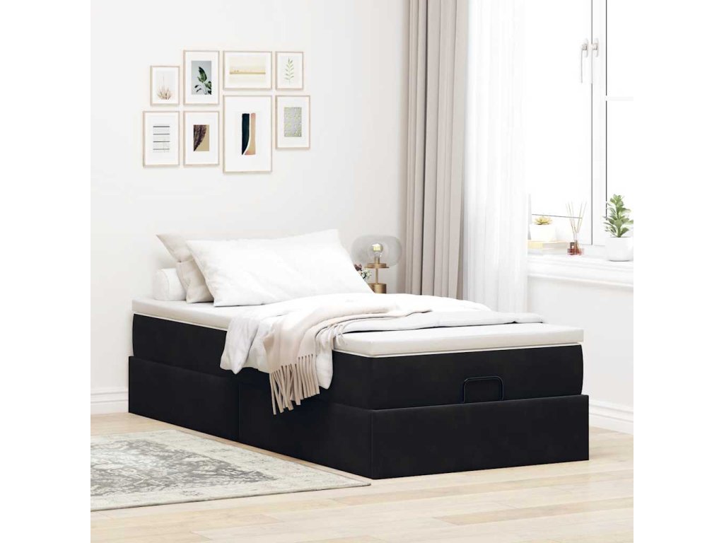 Osmanský rám postele s matrací černá 80x200cm samet 3311149