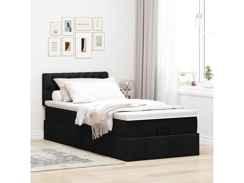 Osmanský rám postele s matrací černá 90x190cm textil 3312355