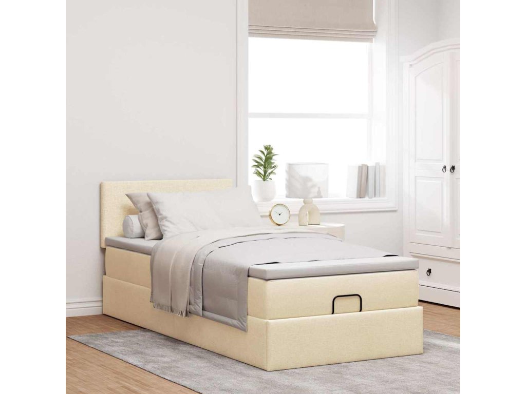 Osmanský rám postele s matrací krémově 80x200cm textil 3312185
