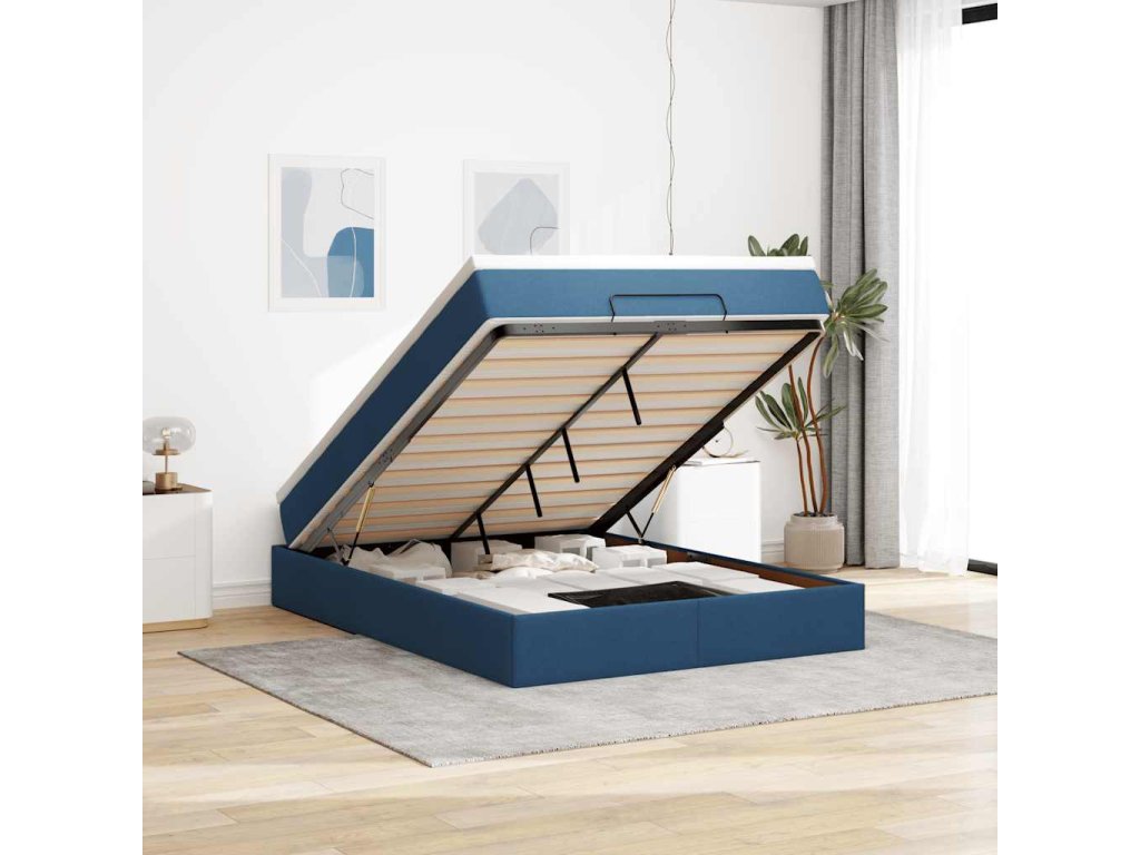 Osmanský rám postele s matrací modrá 140x200cm textil 3311119