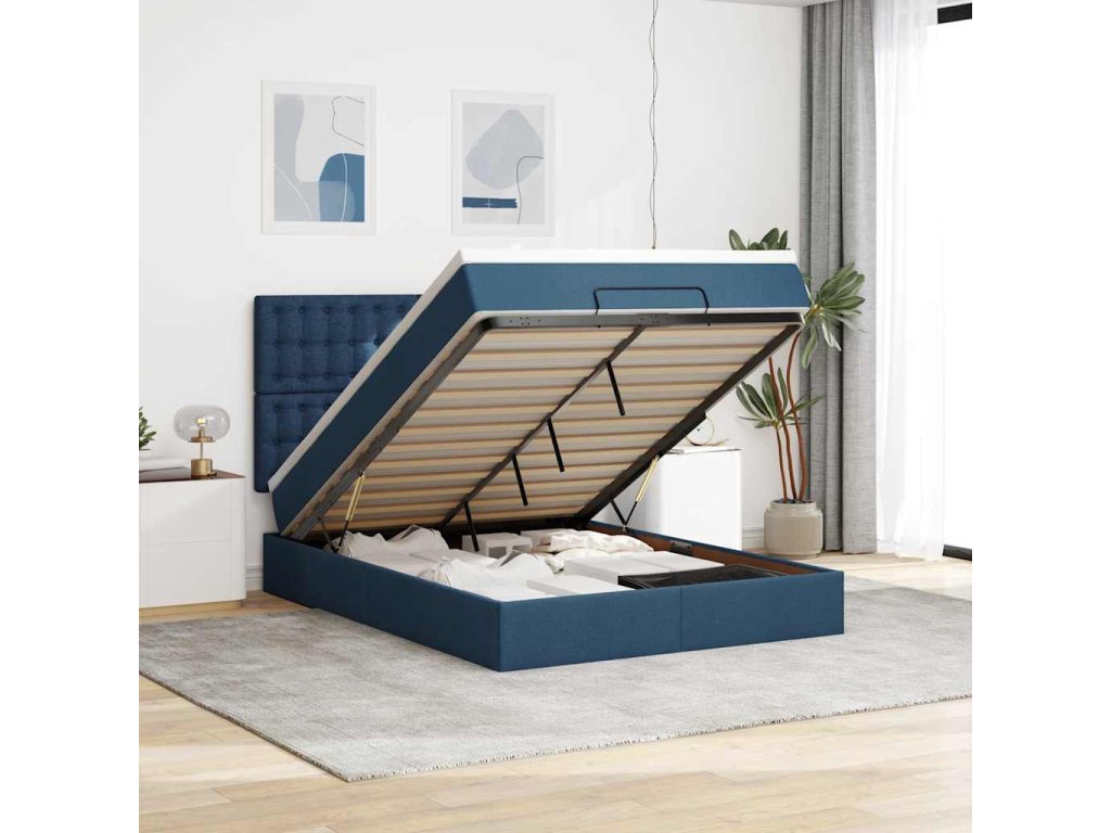 Osmanský rám postele s matrací modrá 140x200cm textil 3313333