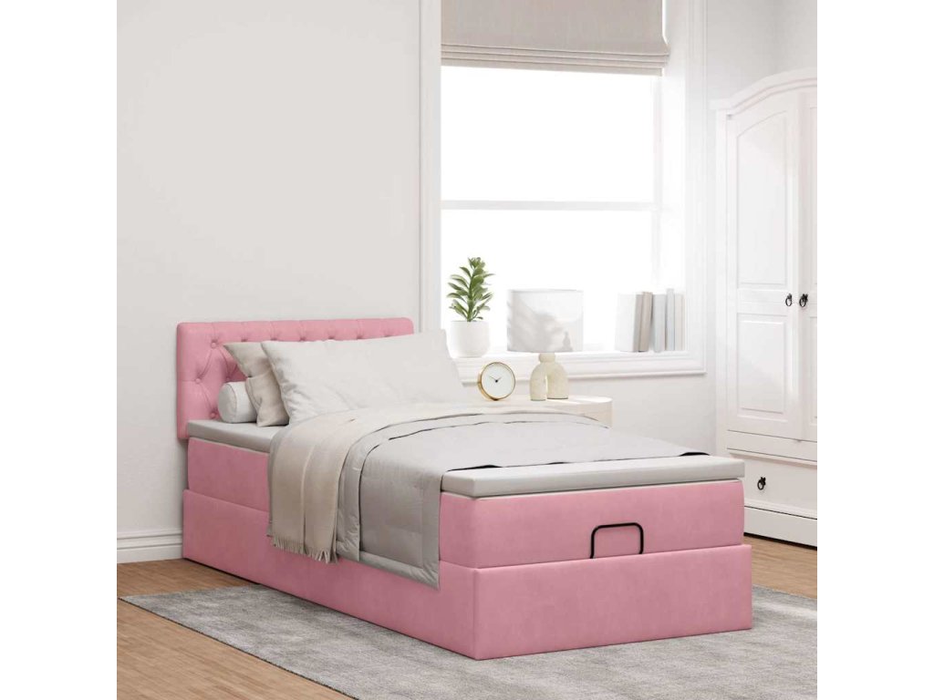 Osmanský rám postele s matrací růžová 100x200cm samet 3311830
