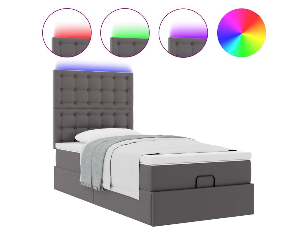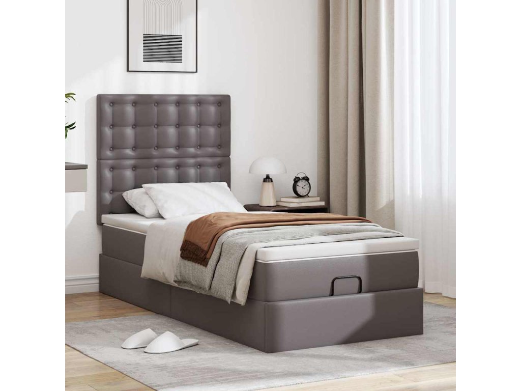 Osmanský rám postele s matrací šedá 90x190cm umělá kůže 3313828