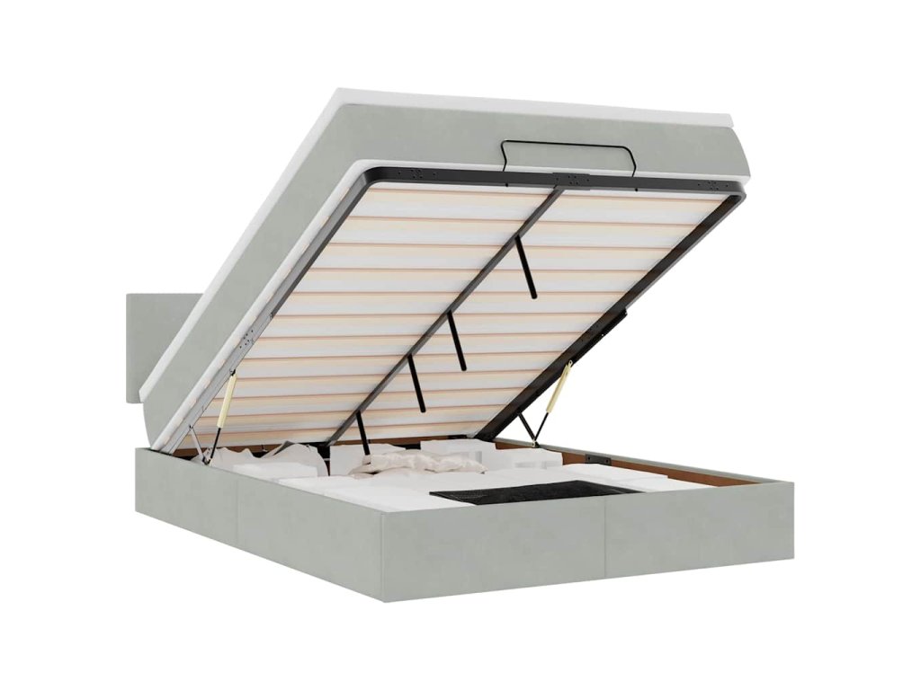 - Dostatek úložného prostoru pod postelí: Díky hydraulickému zvedacímu mechanismu nabízí rám postele dostatek úložného prostoru pod postelí, čímž maximalizuje prostor, aniž by zabíral další podlahovou plochu. Jednoduchým zatažením za rukojeť se roštová základna hladce zvedne a umožní vám rychle a bez námahy vyndat vaše věci.