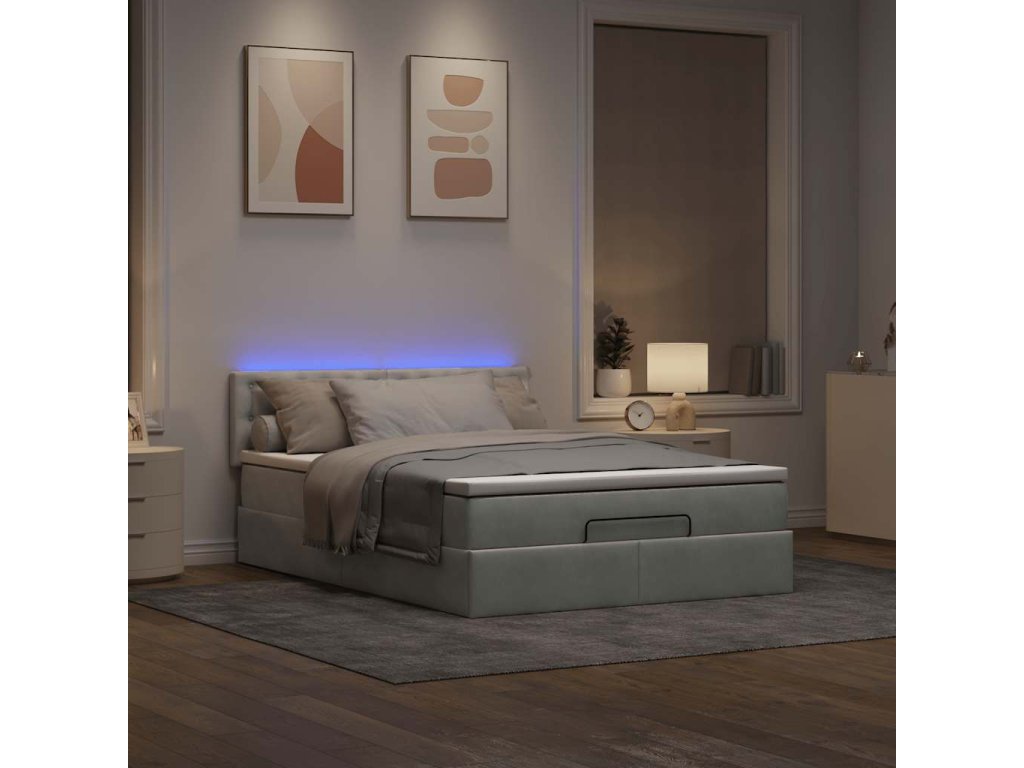 Osmanský rám postele s matrací světle šedá 140x200cm samet 3312770