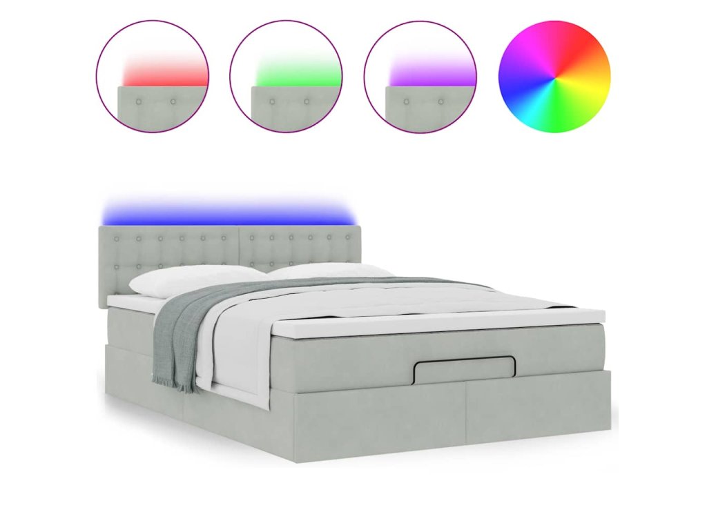 - Světla LED pro příjemnou atmosféru: Tato postel je vybavena LED osvětlením, které lze snadno nastavit a vytvořit tak individuální světelnou atmosféru. Umožňuje přizpůsobit režimy, barvy a jas, abyste si vytvořili příjemnou atmosféru svého interiéru.