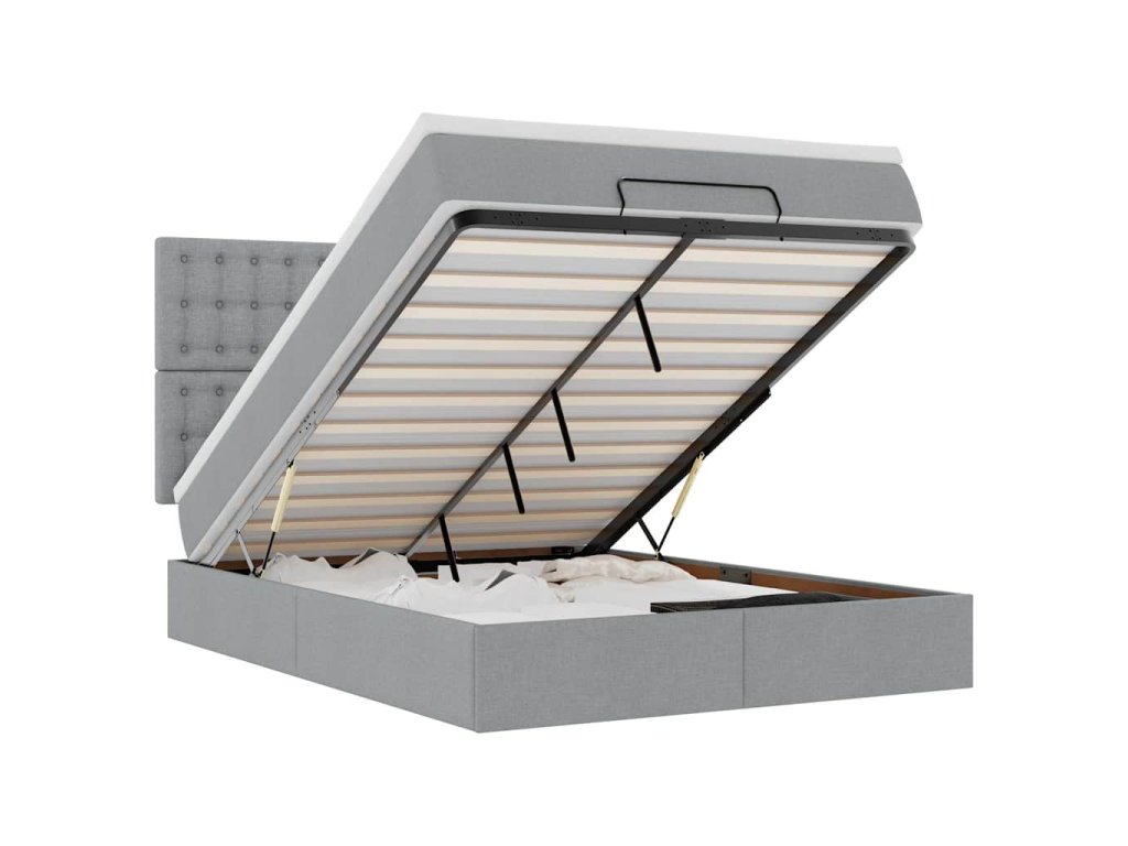 - Dostatek úložného prostoru pod postelí: Díky hydraulickému zvedacímu mechanismu nabízí rám postele dostatek úložného prostoru pod postelí, čímž maximalizuje prostor, aniž by zabíral další podlahovou plochu. Jednoduchým zatažením za rukojeť se roštová základna hladce zvedne a umožní vám rychle a bez námahy vyndat vaše věci.
