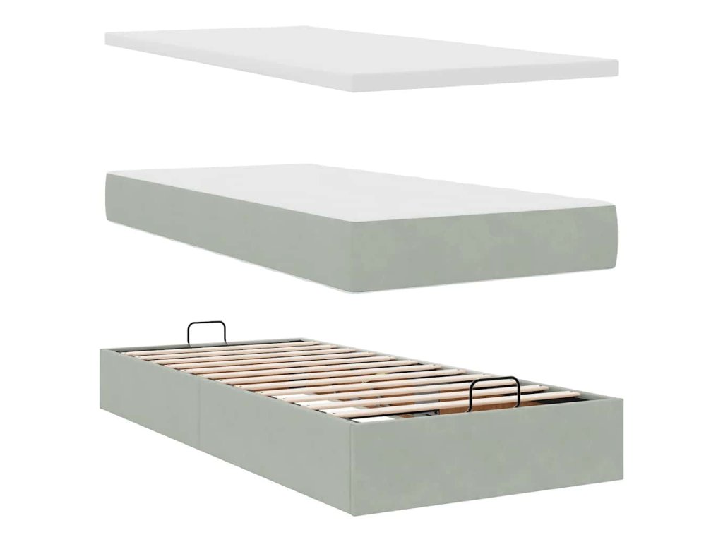Osmanský rám postele s matrací světle šedá 90x200cm samet 3311159