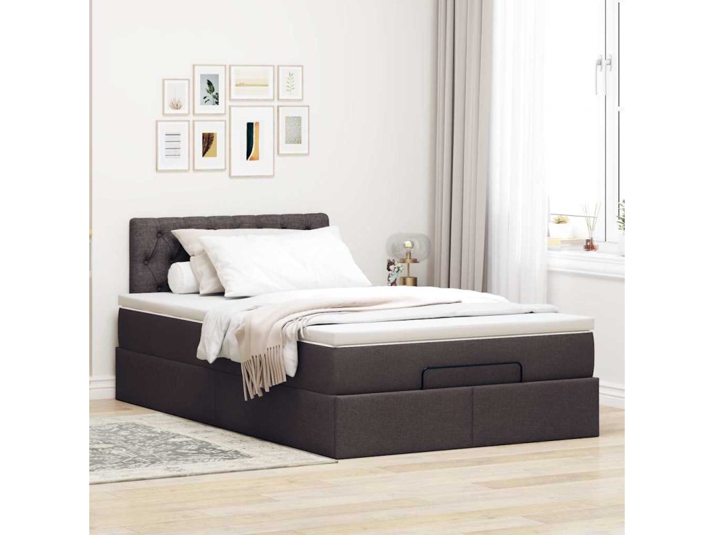 Osmanský rám postele s matrací tmavě hnědá 120x190cm textil 3311528