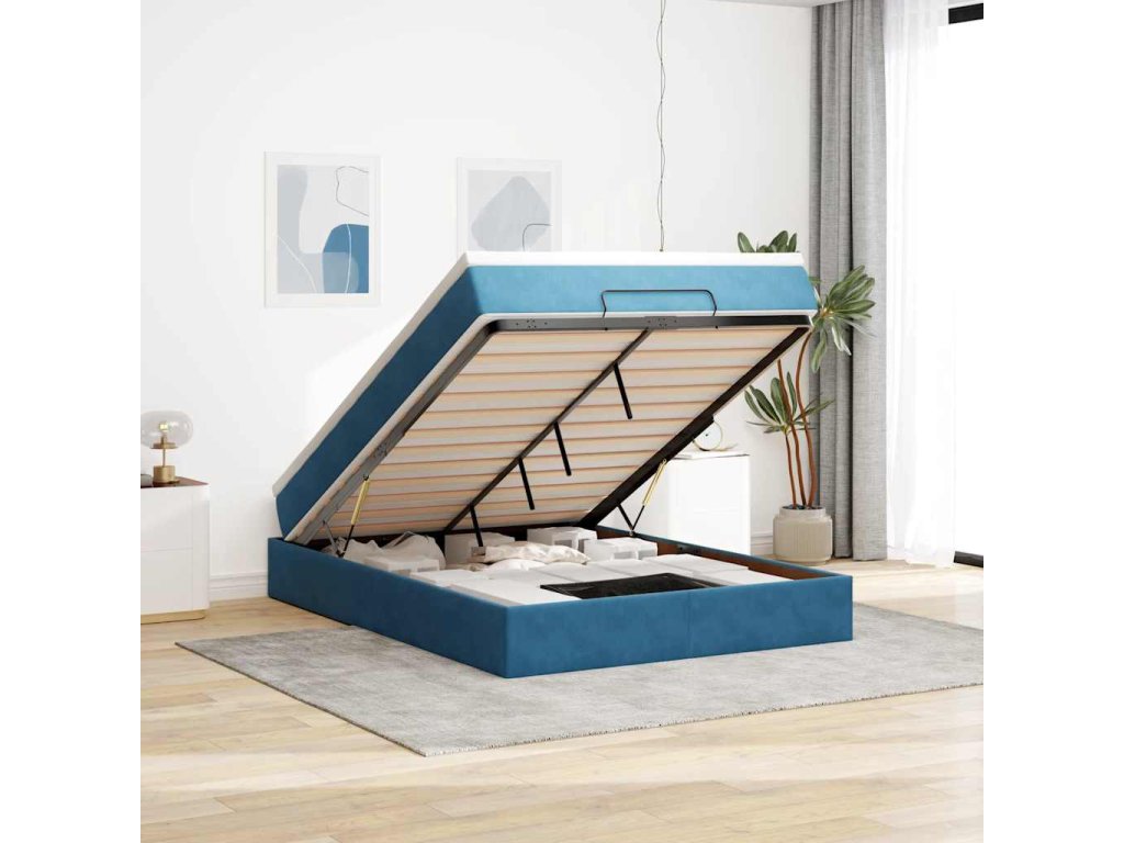 Osmanský rám postele s matrací tmavě modrá 140x200cm samet 3311193