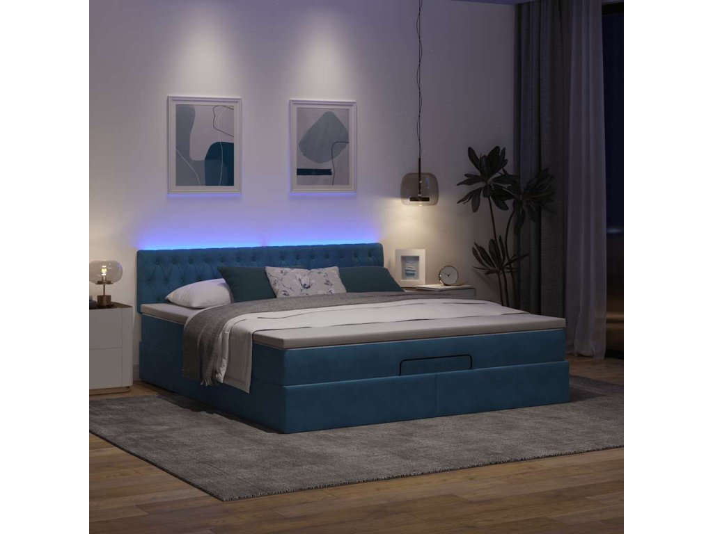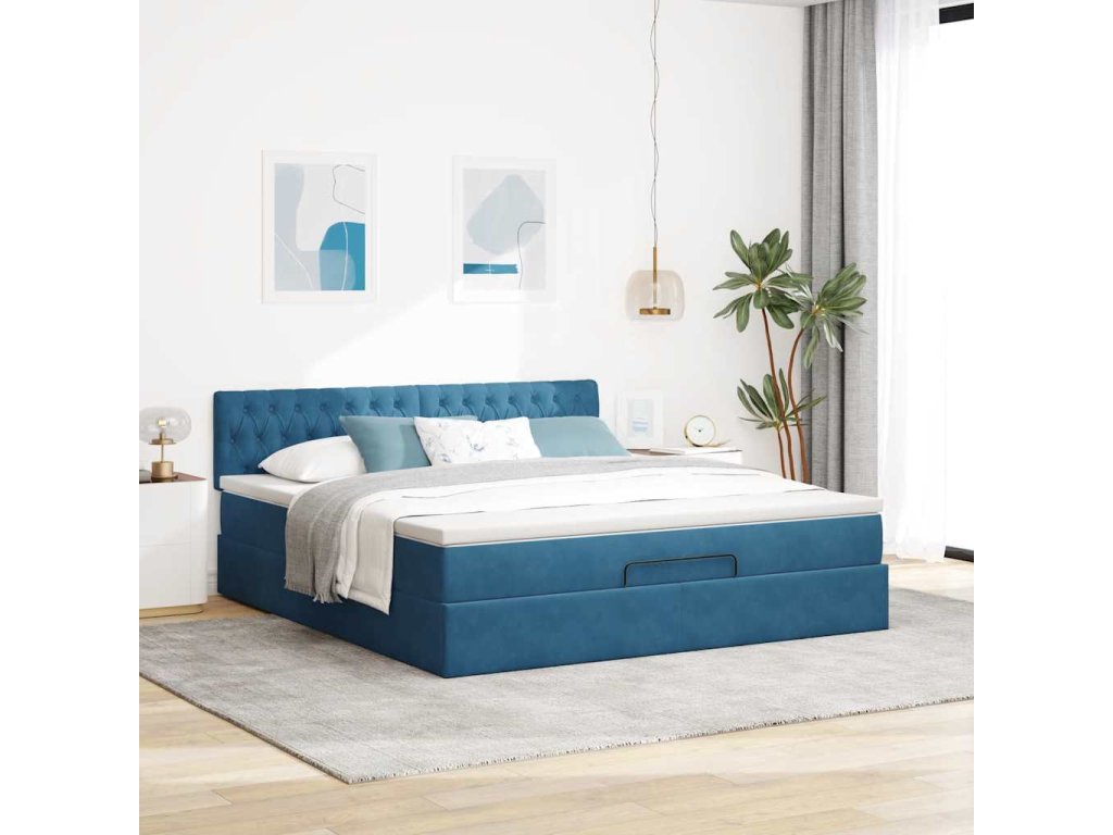 Osmanský rám postele s matrací tmavě modrá 160x200cm samet 3312708