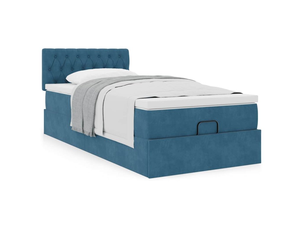 Osmanský rám postele s matrací tmavě modrá 80x200cm samet 3311811