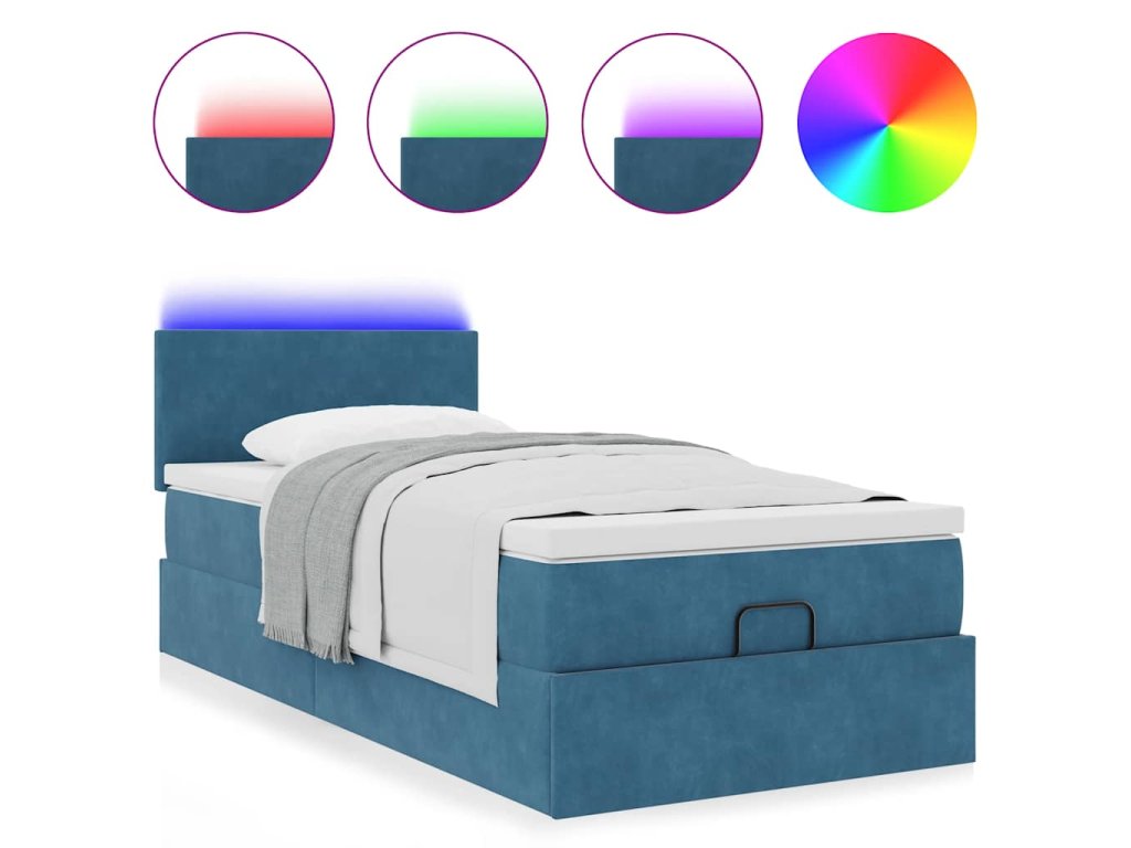 Osmanský rám postele s matrací tmavě modrá 90x190cm samet 3312522